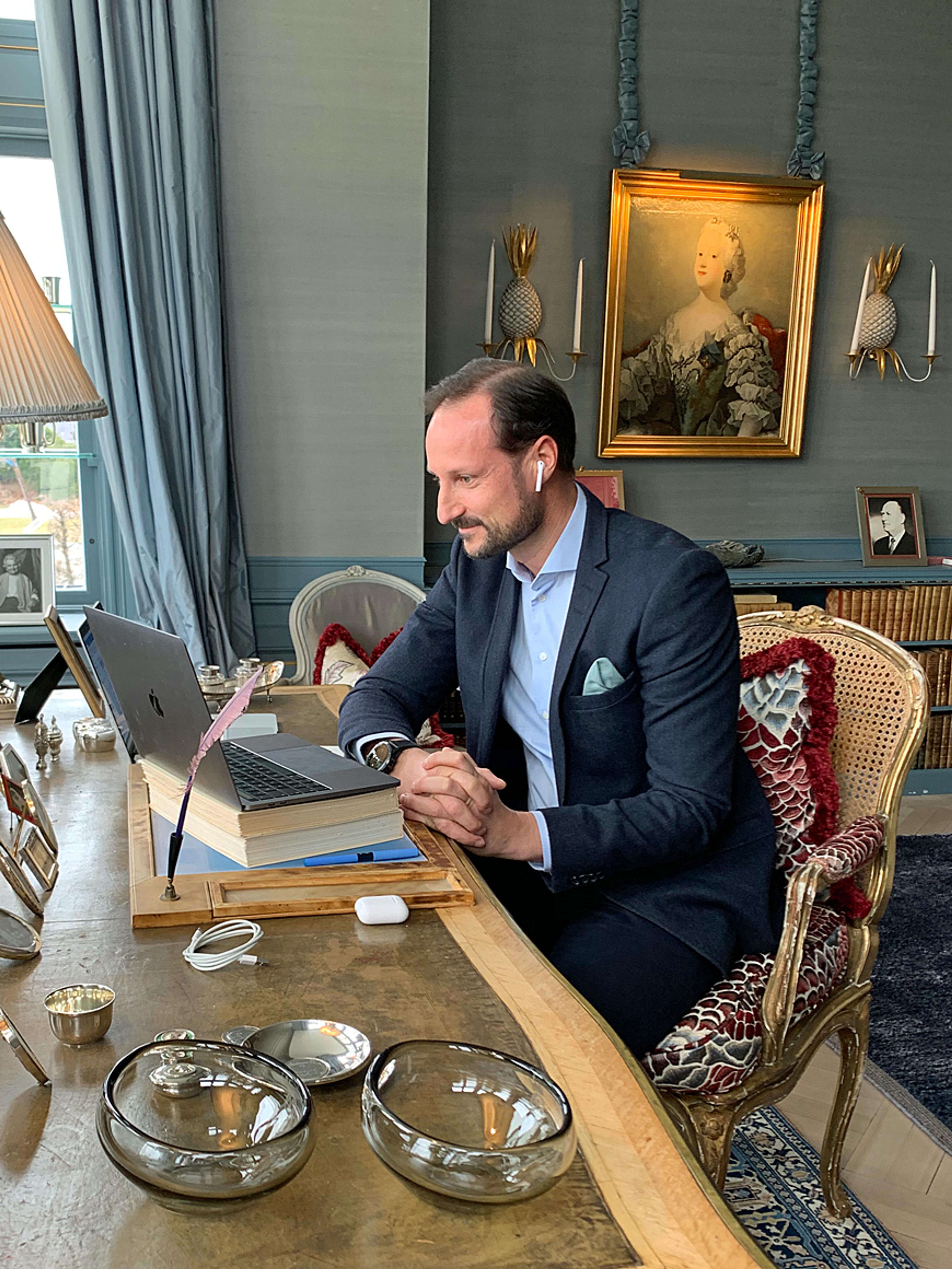 – Tusen takk til alle dere som står på hver dag for å få dette til å fungere, sa Kronprins Haakon på video fra Skaugum.