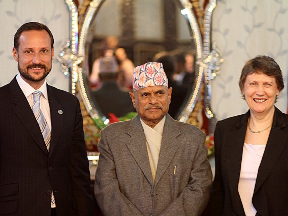 Kronprinsen og Helen Clark hadde også et møte med Nepals president, H.E. dr Ram Baran Yadav i dag. Kronprins Haakon benyttet anledningen til å gratulere Presidenten med Nepals resultater i arbeidet med FNs tusenårsmål. President Yadav er lege av utdanning og tidligere helseminister, og har støttet arbeidet med tusenårsmålene aktivt.