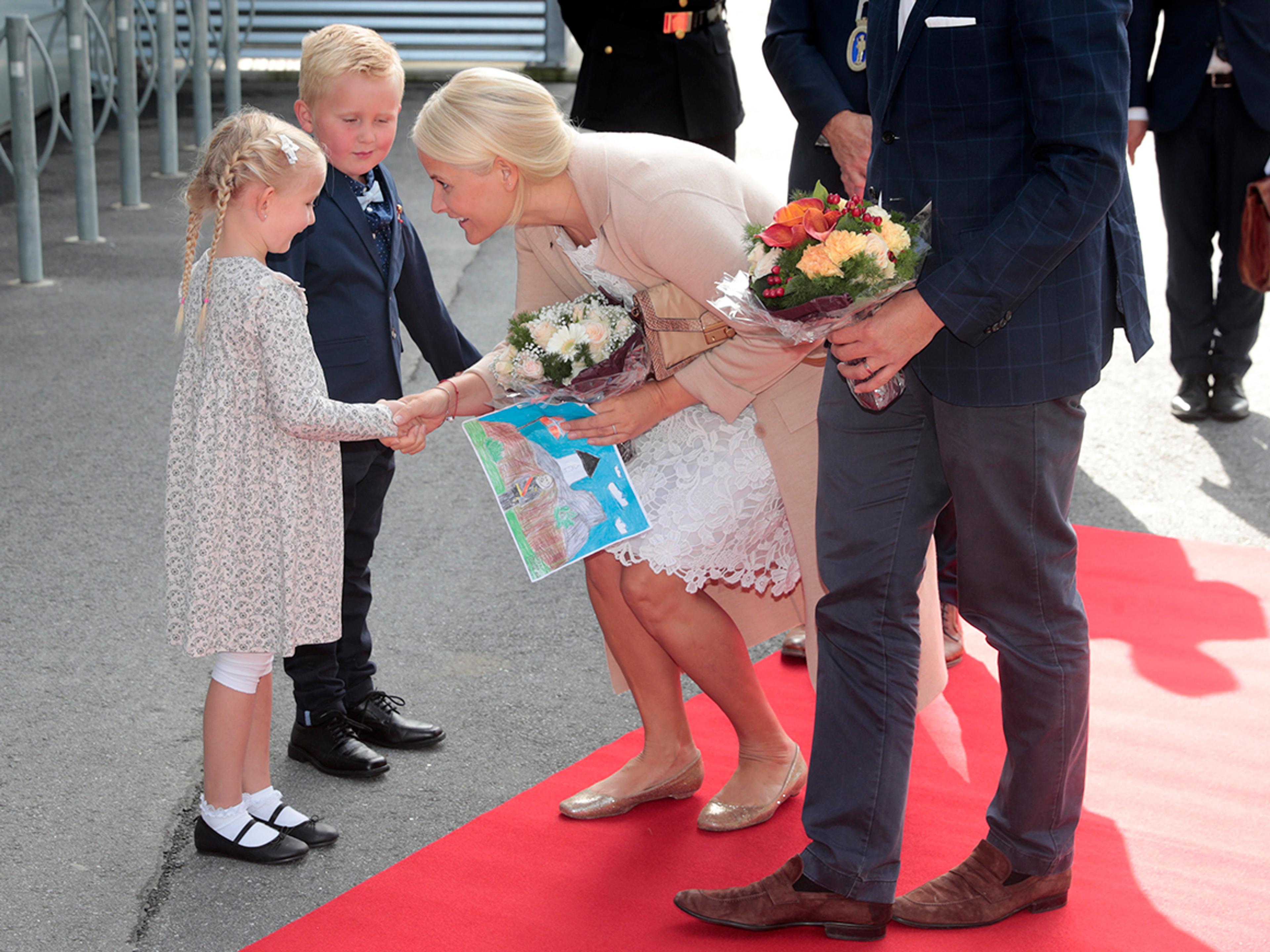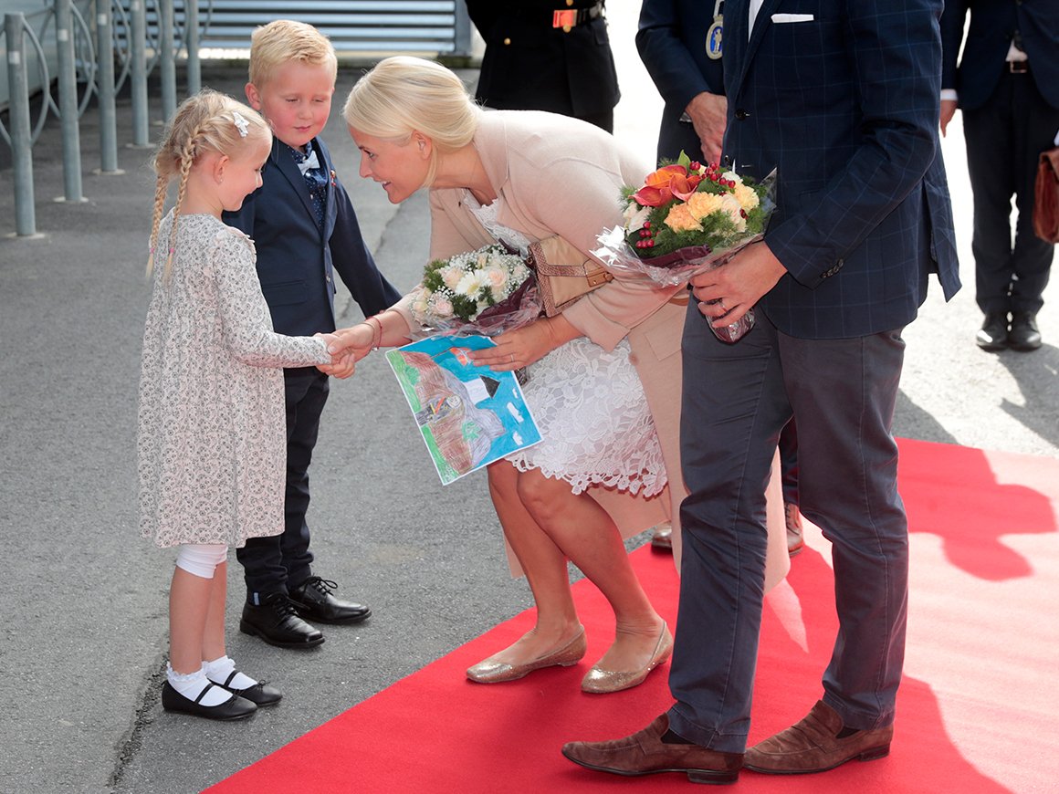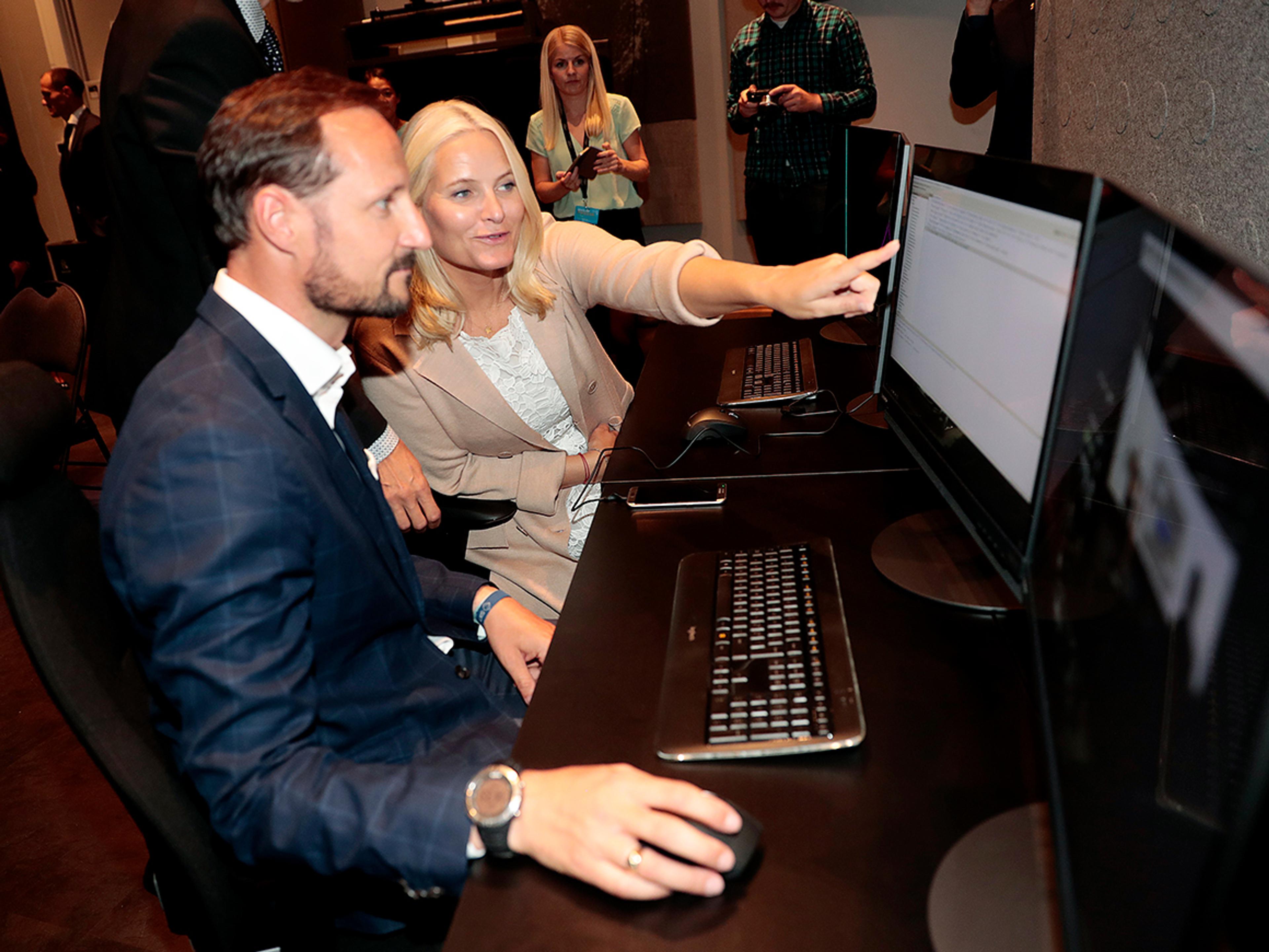 Kronprinsparet fekk òg prøve seg på å leggje inn informasjon for å auke dronens digitale intelligens.