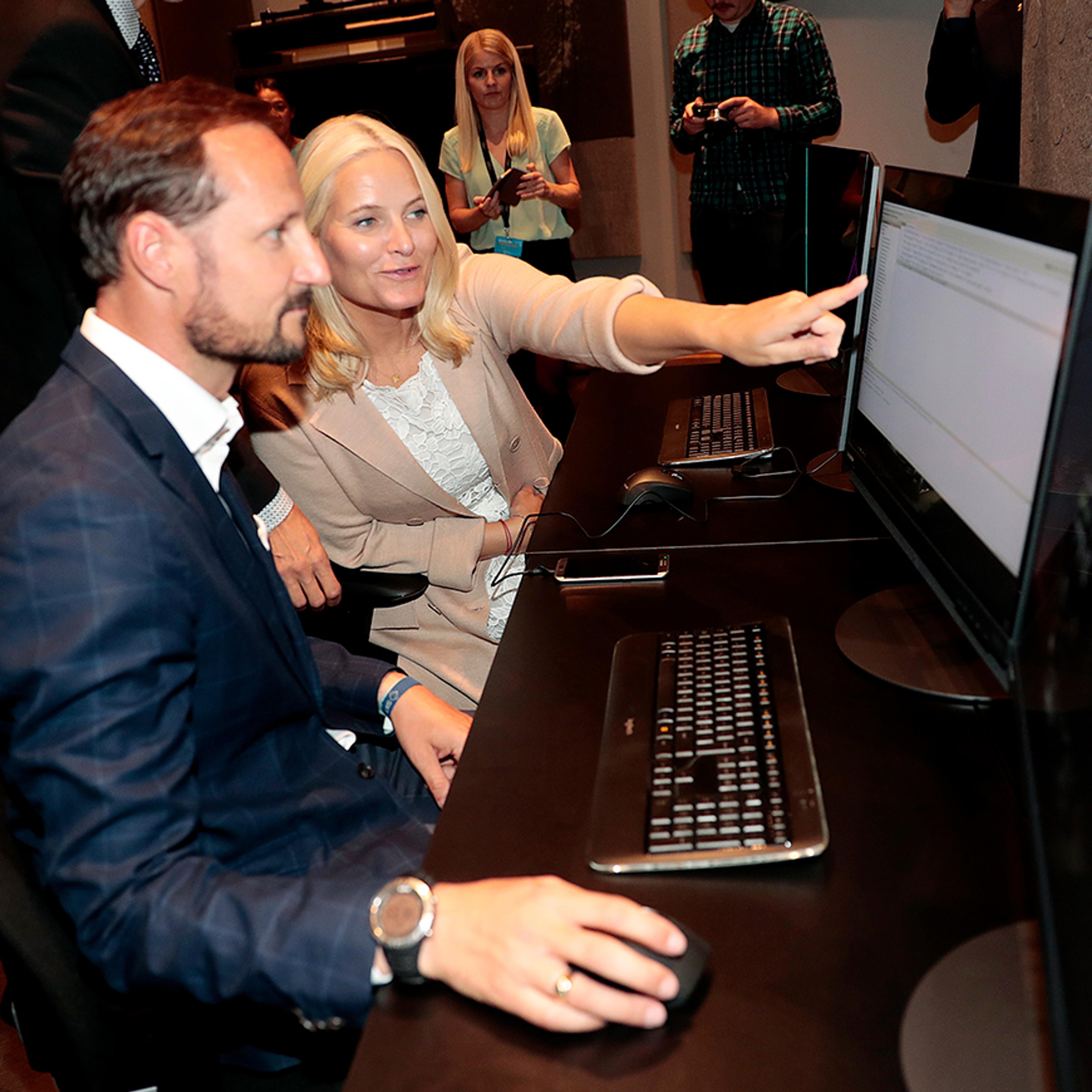 Kronprinsparet besøkte teknologibedrifta eSmart Systems i Halden i dag. Dei ønskte å lære meir om arbeidet bedrifta gjer innan digital intelligens og såkalla smarte samfunn.