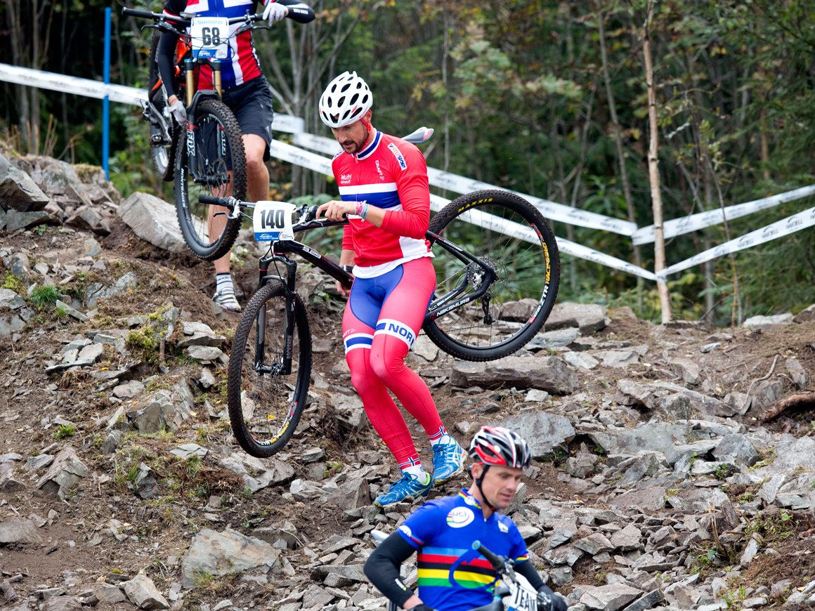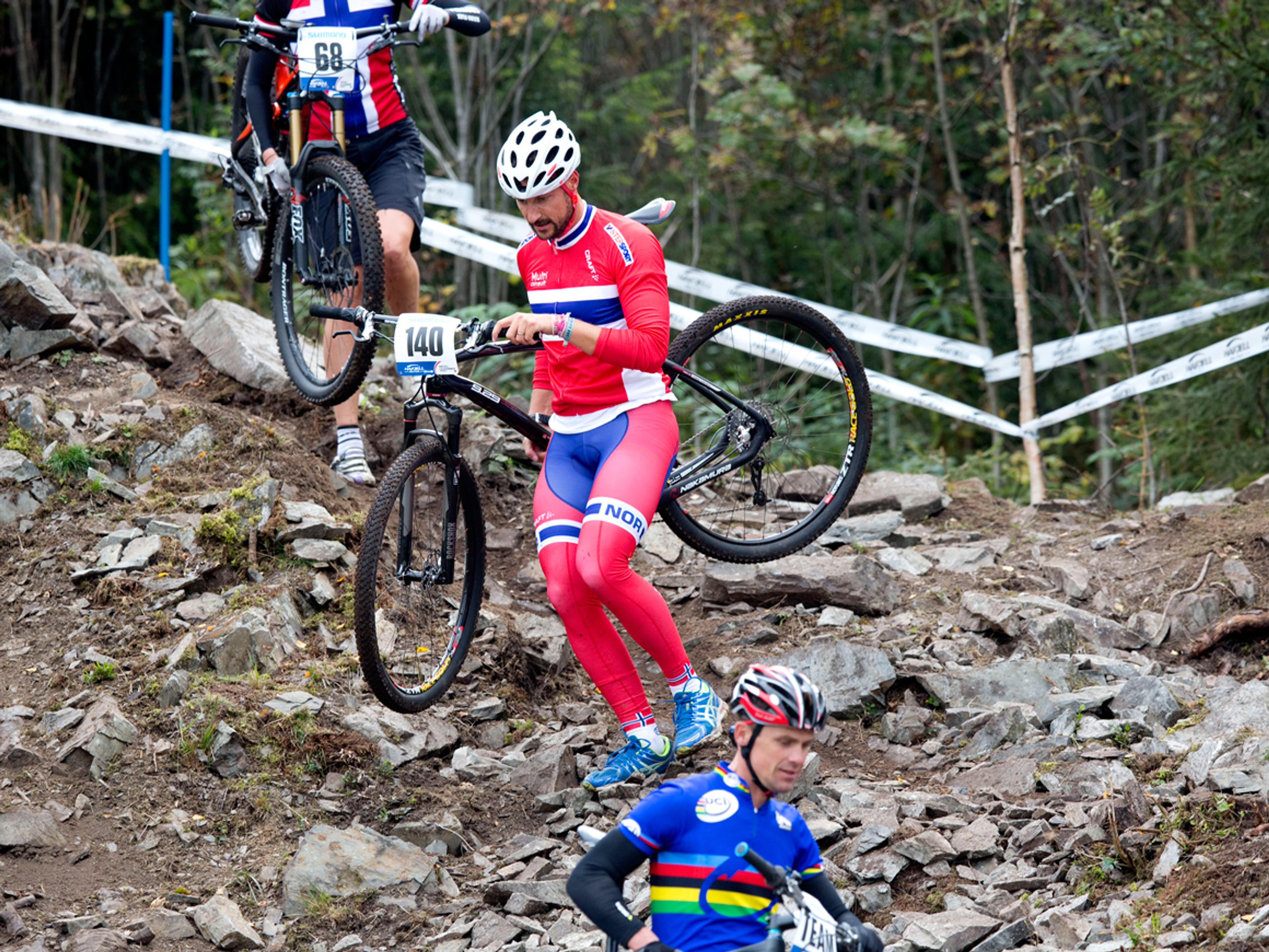 Denne helgen avsluttes VM i terrengsykling - Mountainbike & Trials - på Hafjell. H.K.H. Kronprinsen så finalen i rundbane for kvinner under 23 i dag - men først fikk han selv teste deler av løypa.