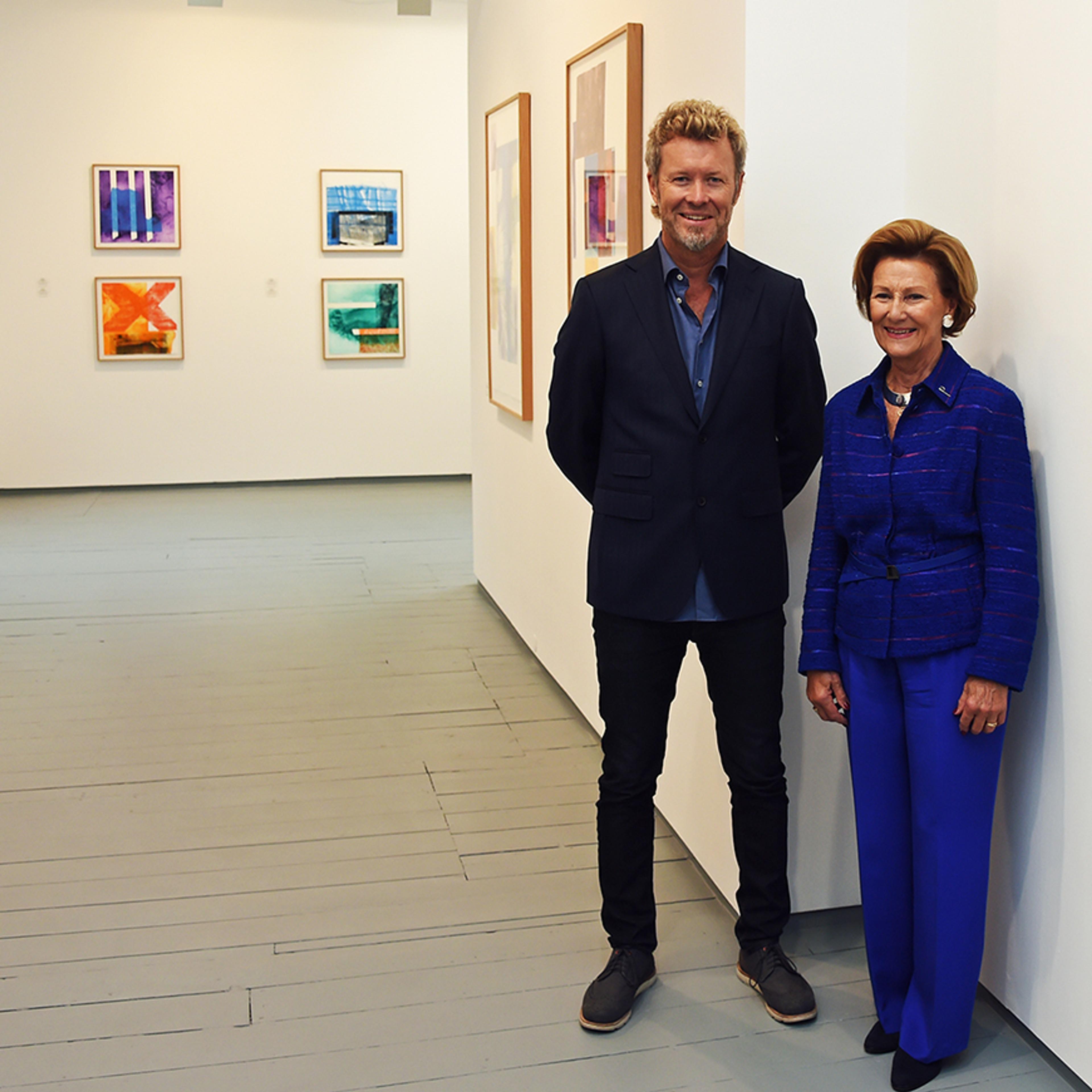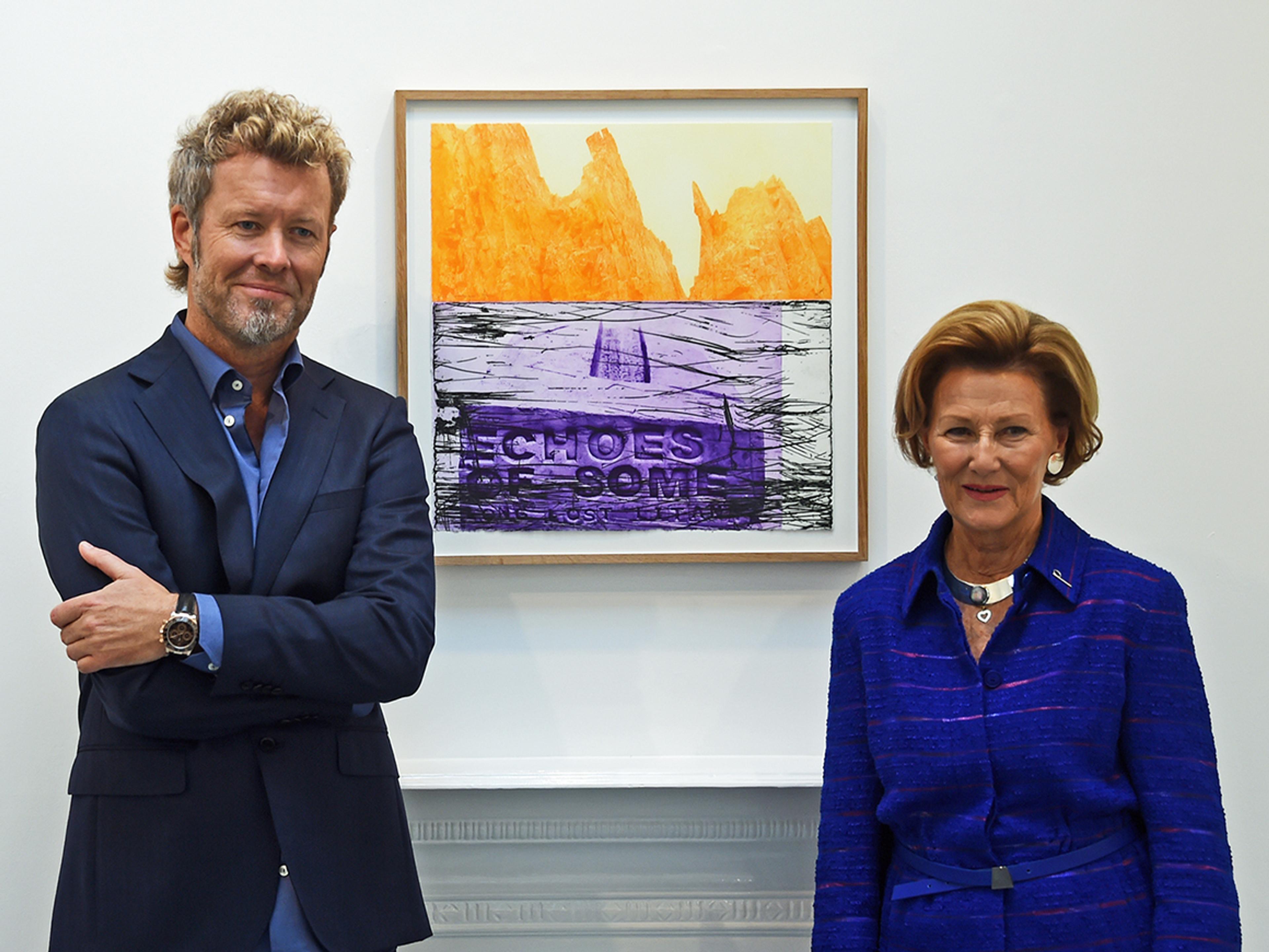 Både Dronningen og Magne Furuholmen er til stede under åpningen på Galleri Paul Stolper i kveld.