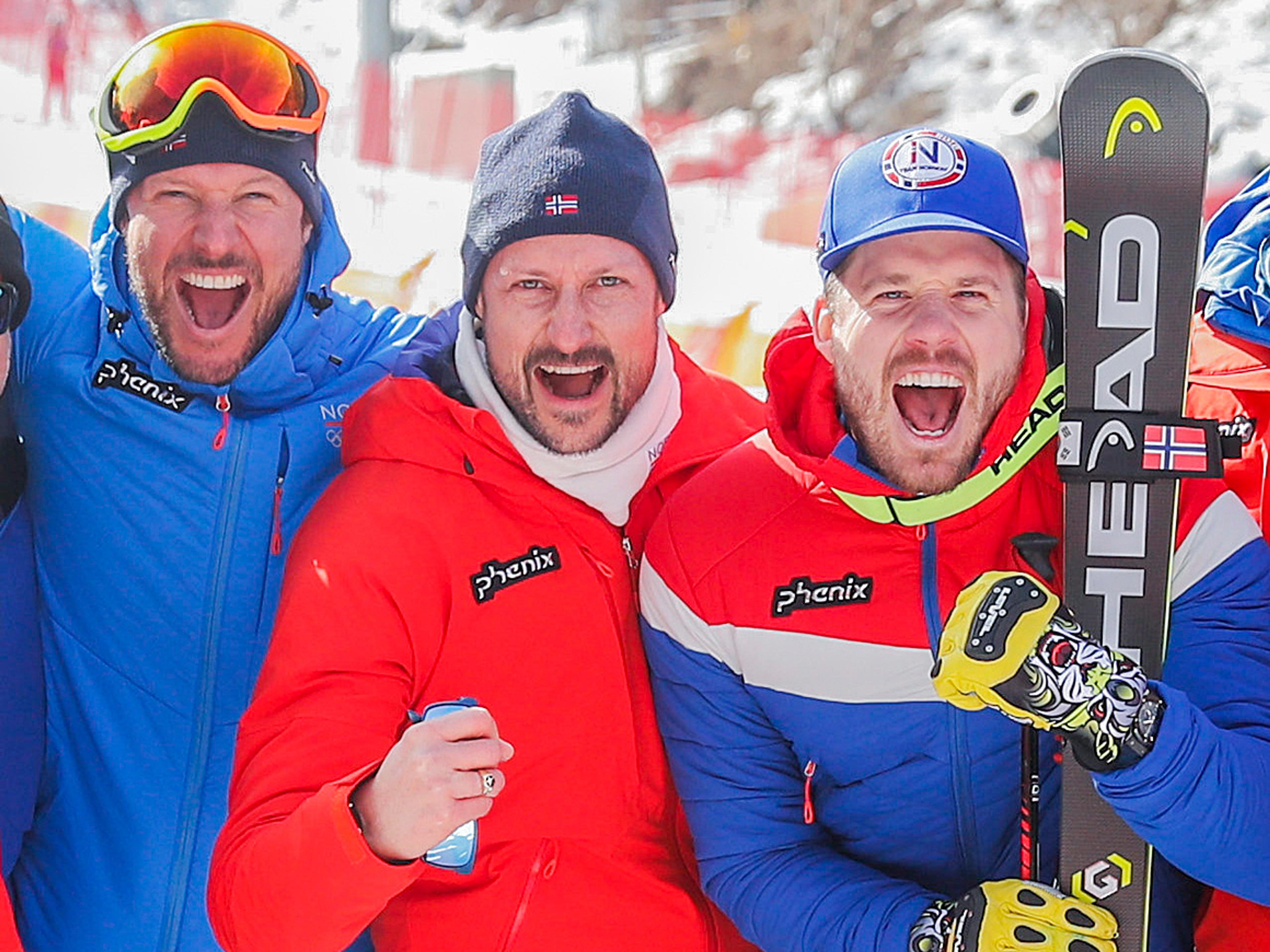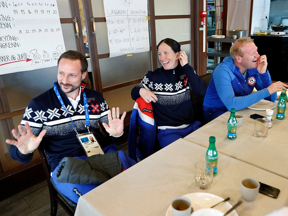 Samtidig som Kronprinsen jublet over dobbeltseieren med Svindal og Jansrud i målområdet, fulgte Ragnhild Mowinckel opp med sølv i storslalåm. Det er Norges første kvinnelige alpinmedalje i OL siden 1936.