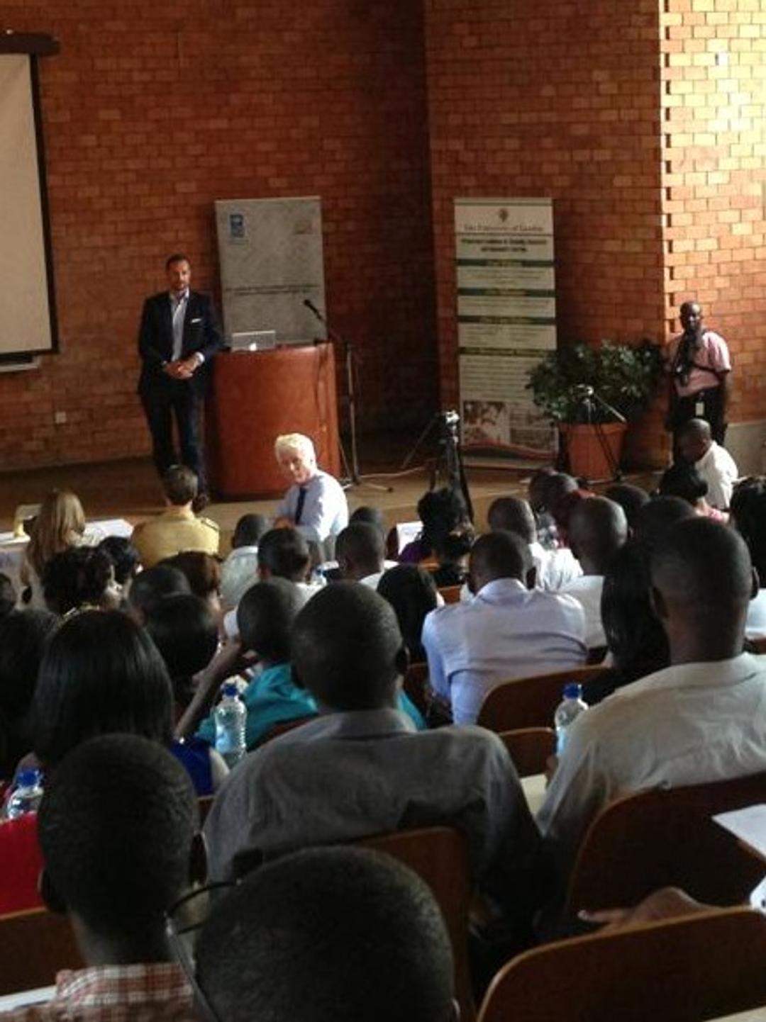 Kronprinsen møtte i dag representanter for ungdomsorganisasjonene ved Universitetet i Zambia for å diskutere UNDP og FNs rolle. Her jobbes det med spørsmål knyttet til folkeopplysning og opplæring i utviklingsspørsmål, bevisstgjøring og engasjement. Dialogen dreide seg også om relevansen av høyere utdanning i et ungt og raskt voksende zambisk samfunn.