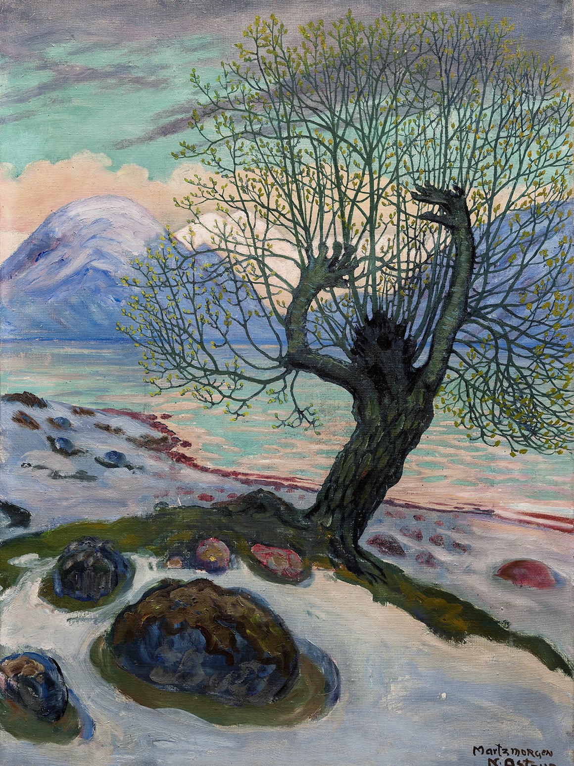- He sought to convey the mystique and magic of nature – andhe used strong colours. It has been said that the vibrancy of Astrup’s colours is drawn from the earth itself; from the rain-drenched mountains, moss and lichens, from the waterfalls and mountain glaciers.