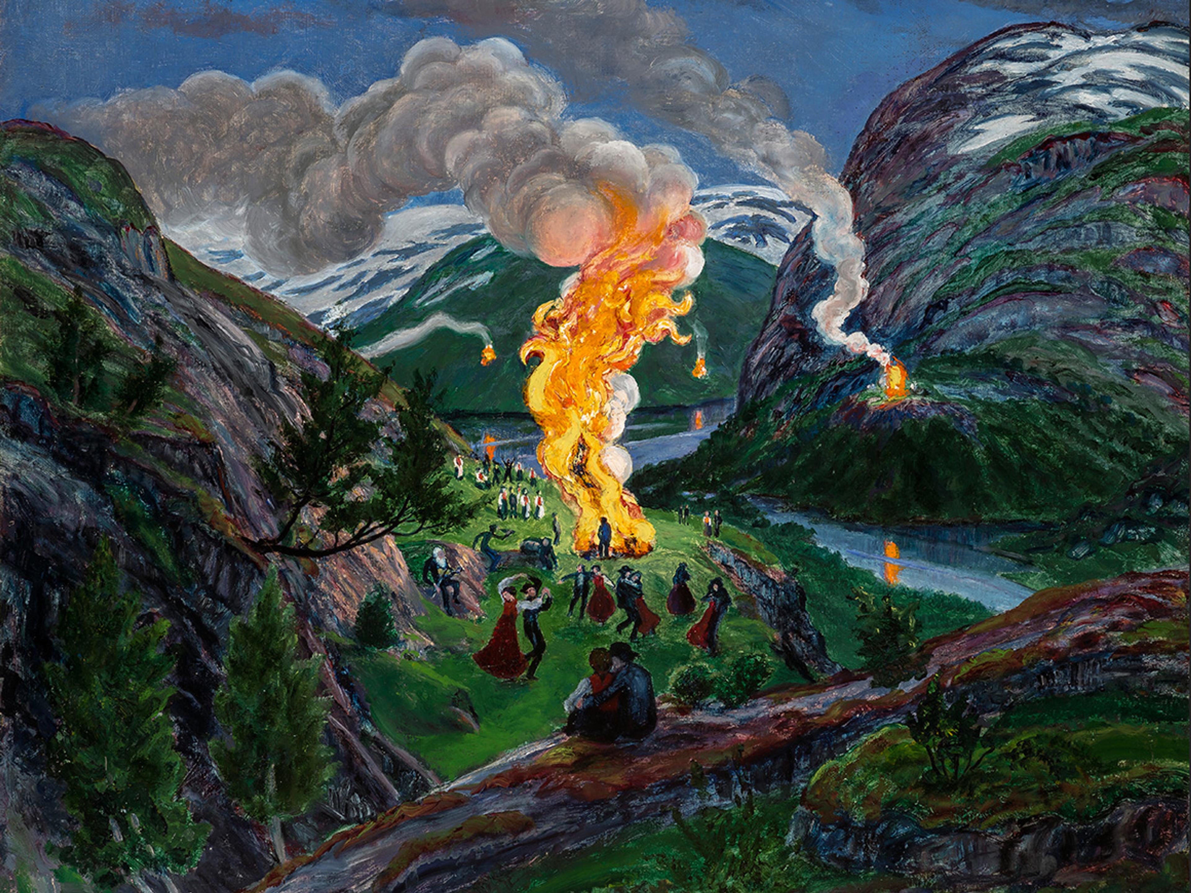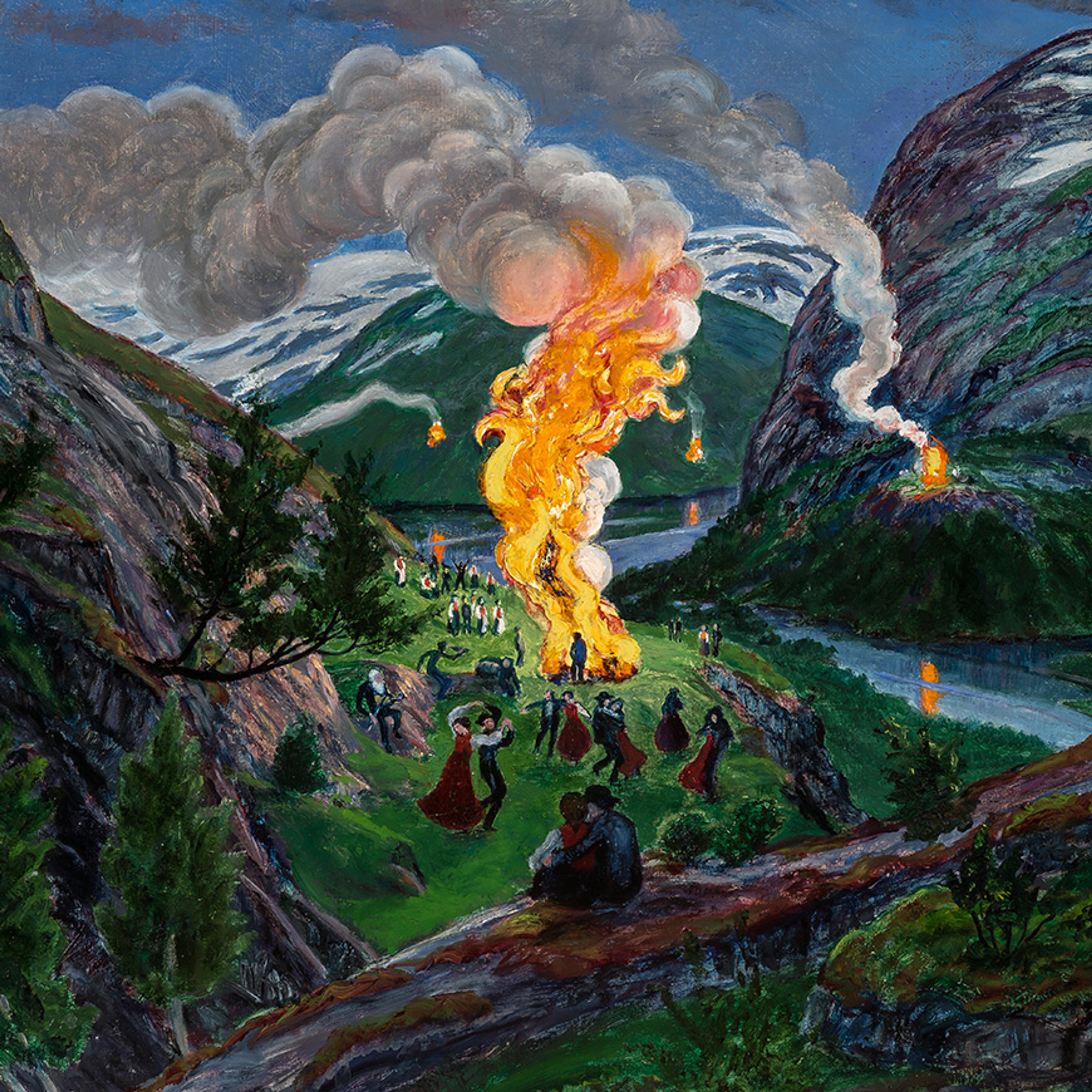 Han var også opptatt av folklore og det mytiske og mystiske har en naturlig plass i bildene hans. Det nordiske lyset og de blonde sommerkveldene opptok ham, og Ikke minst var han fasinert av midtsommerfeiringen. Hans malerier av St. Hansbålene er blant de mest kjente i Norge.