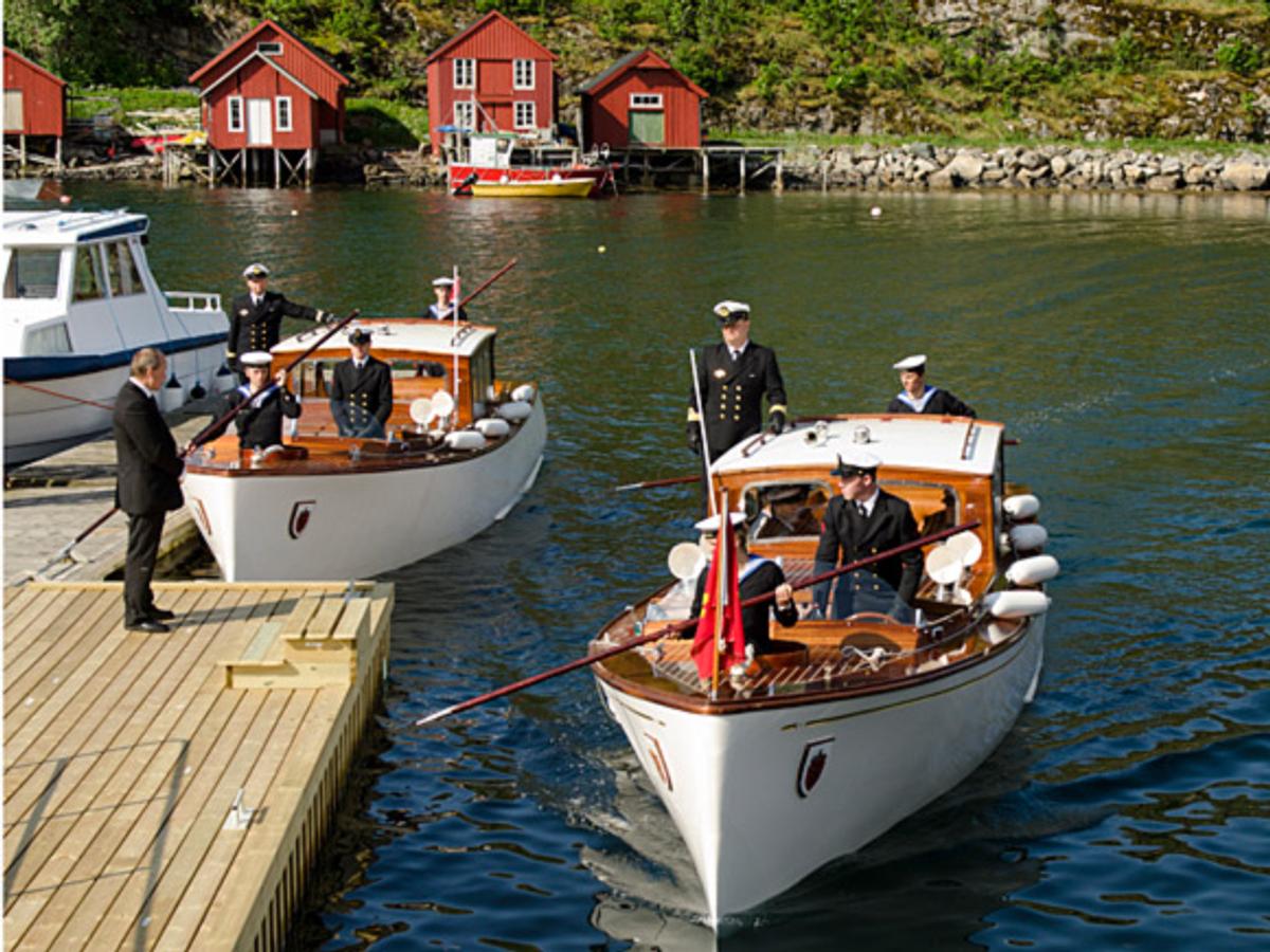 Så tok Kongeparet farvel med Roan. Men først signerte de en plakett som skal anbringes på i krysset ned mot Bessaker. Musikk ledsaget avskjeden, på samme måte som barn fra Roan spilte og sang da Kongesjaluppen ankom.