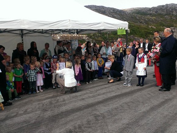 Så ble det taler, sang og musikk og (u)høytidelig gaveoverrekkelse fra Norsk Gammelmannsforening - før følget måtte reise videre til neste stopp på fylkesturen: Roan.