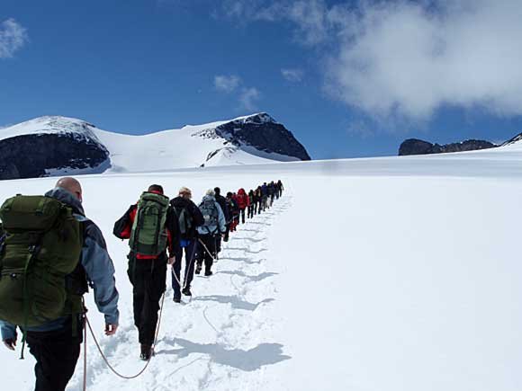 Over 1000 personar deltok denne helga, og rundt 800 gjekk til Galdhøpiggen på laurdag. Kronprins Haakon fekk helsa på mange av deltakarane på turen denne dagen, som gjekk i strålande solskin.