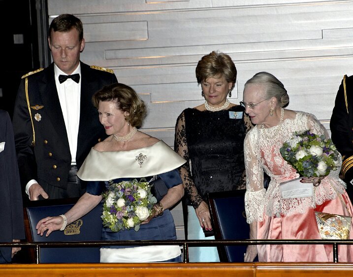 Dronning Sonja ankom Operaen sammen med det danske regentparet, og Dronningene fikk blomster av ballettdanseren Sylvester. I foajeen fikk Dronning Sonja hilse på Danmarks statsminister Helle Thorning-Schmidt og Folketingets formann Mogens Lykketoft. Sammen med Dronning Margrethe og Prins Henrik tok Dronning Sonja plass i Kongelosjen, der de fikk selskap av både Kronprins Haakon, Det danske kronprinsparet, Prins Joachim og Prinsesse Marie og Prinsesse Benedikte.