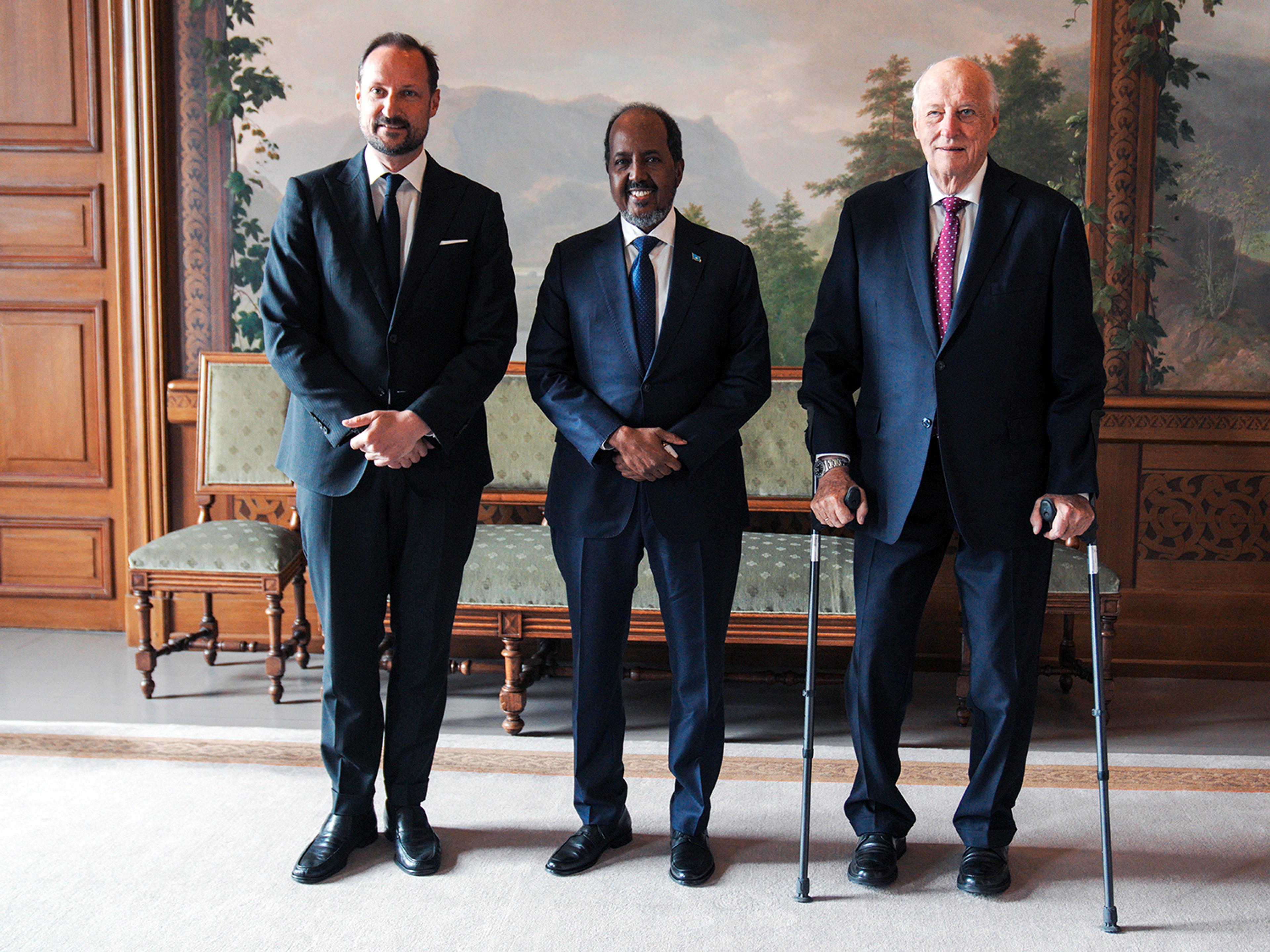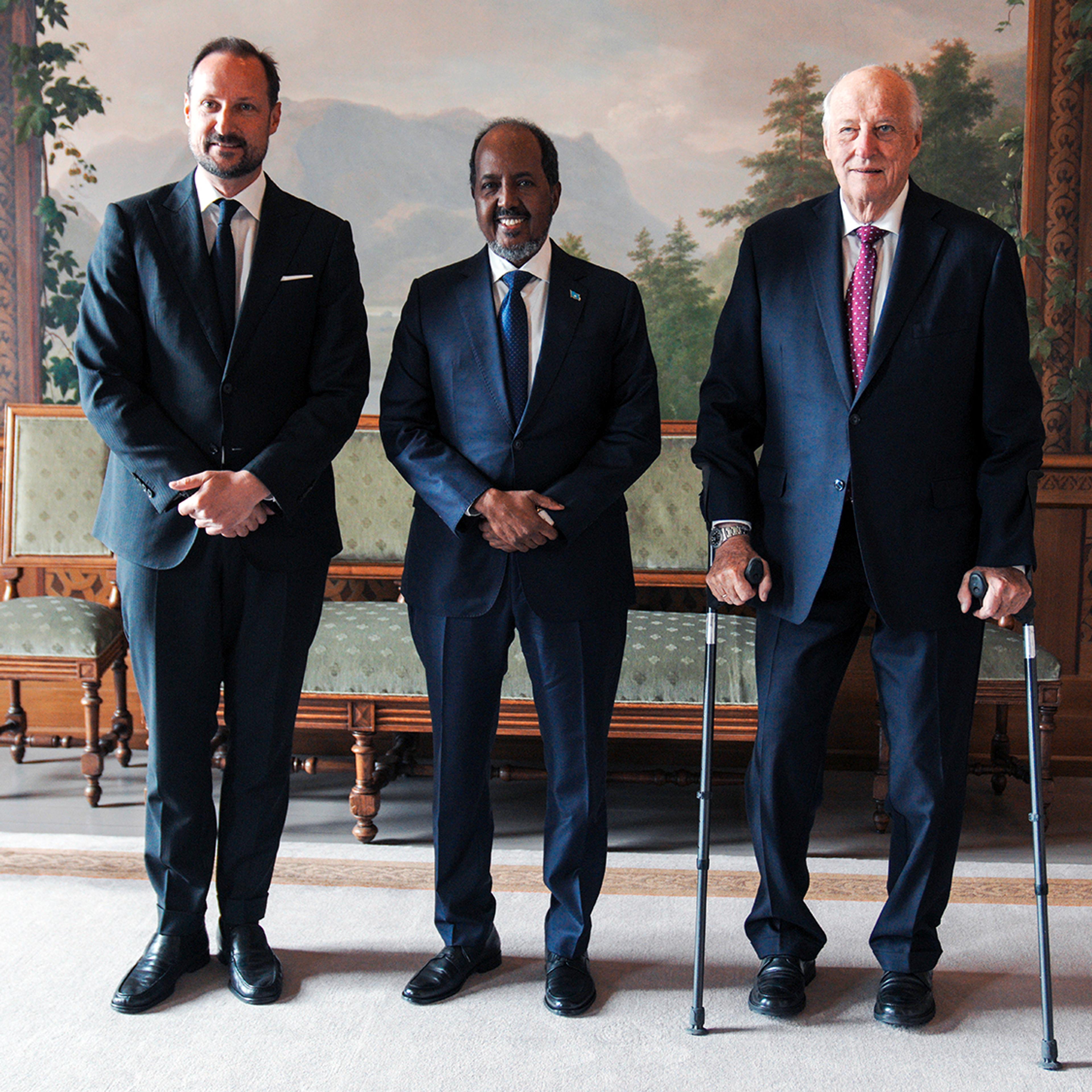 Hans Majestet Kong Harald tok imot Somalias president, Hans Eksellense herr Hassan Sheikh Mohamud, i audiens i dag. Det er første gang en president fra Somalia besøker Norge.