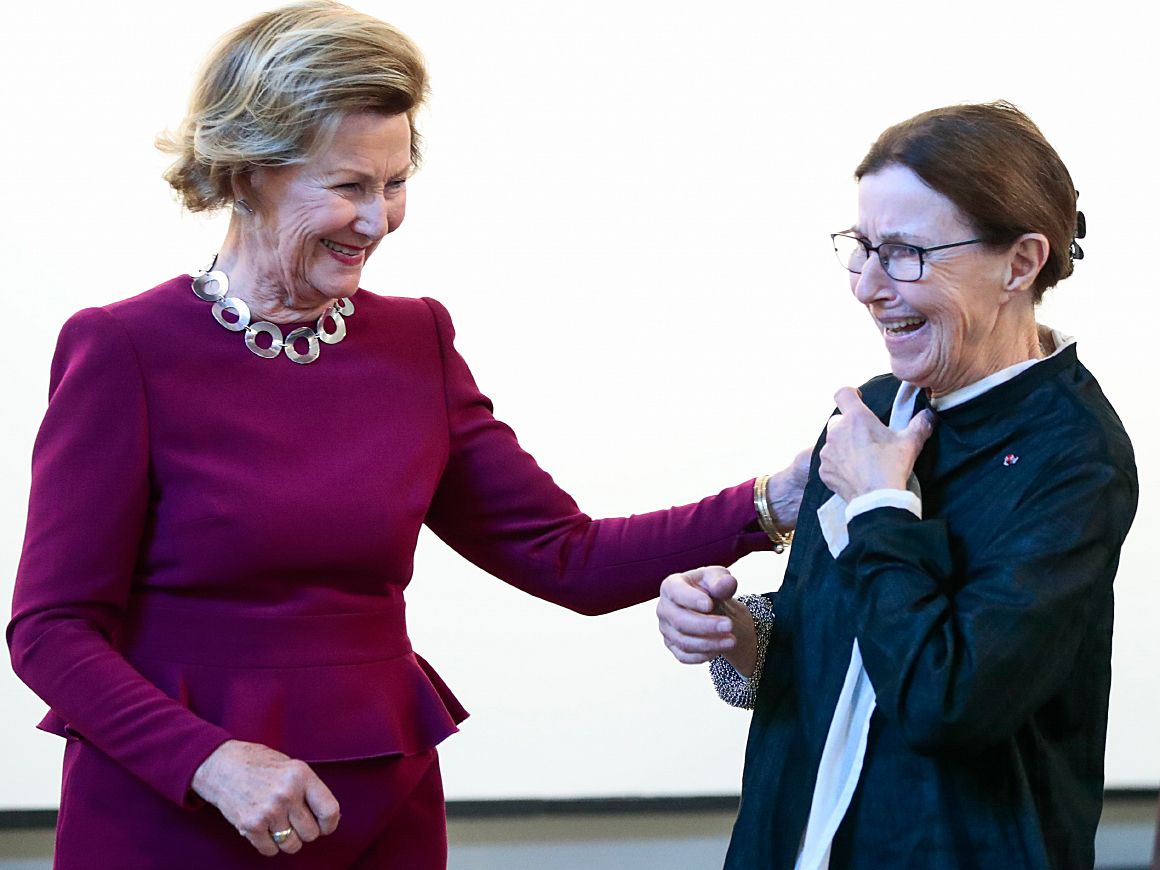 Dronningen ønsket velkommen til åpningen i ettermiddag. - Det er en stor glede å få invitere dere inn i universet til en kunstner som jeg – og mange med meg – setter meget høyt, sa Dronning Sonja til gjestene, som omfattet både etablerte gullsmeder og smykkekunstnere, og ungdom under utdanning.