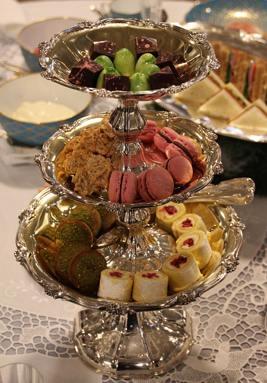 Det tradisjonelle tidspunktet for Afternoon Tea er mellom klokken 15.00 og 17.00. I Kong Haakon og Dronning Mauds tid på Slottet ble Afternoon Tea servert klokken 17.00, gjerne i Speilsalen som var Dronning Mauds "Drawing Room". Til dette britiske teritualet serveres det sandwicher, scones med syltetøy, marmelade, clotted cream og småkaker.