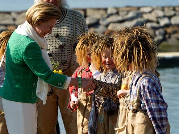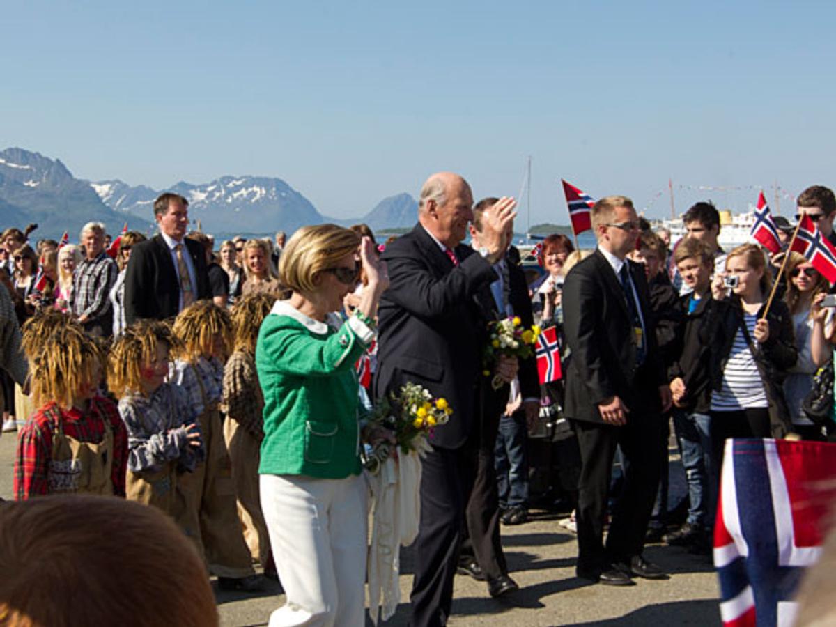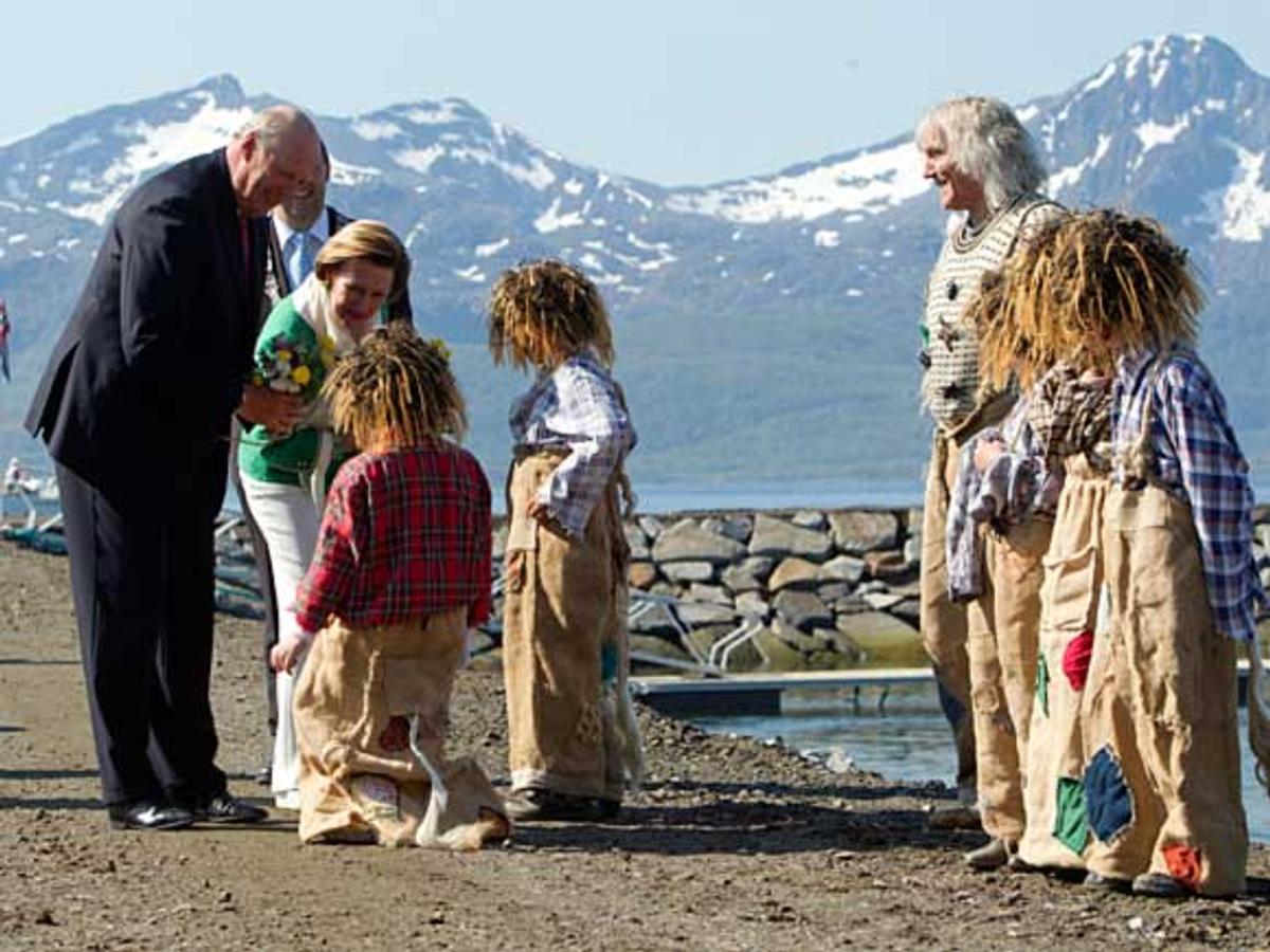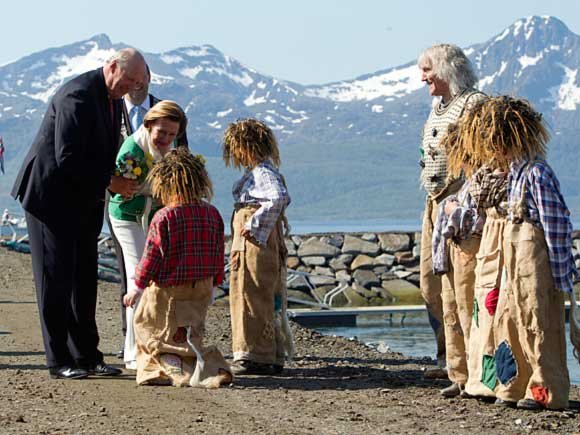Det var troll som møtte Kongeparet da de ankom Berg kommune på Senja i formiddag. Og om det ikke var Senjatrollet selv som sto på kaien, ga ett stort og fem små troll Kongen og Dronningen en varm velkomst.