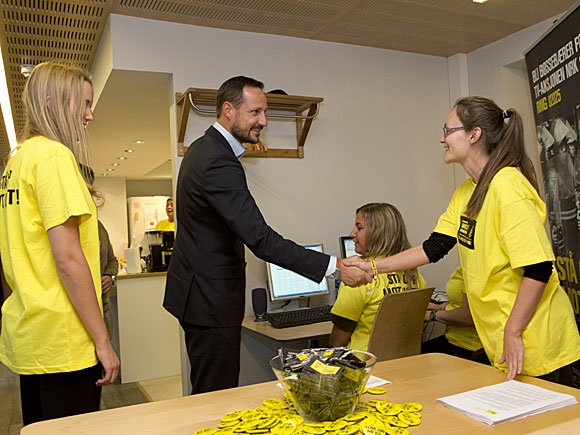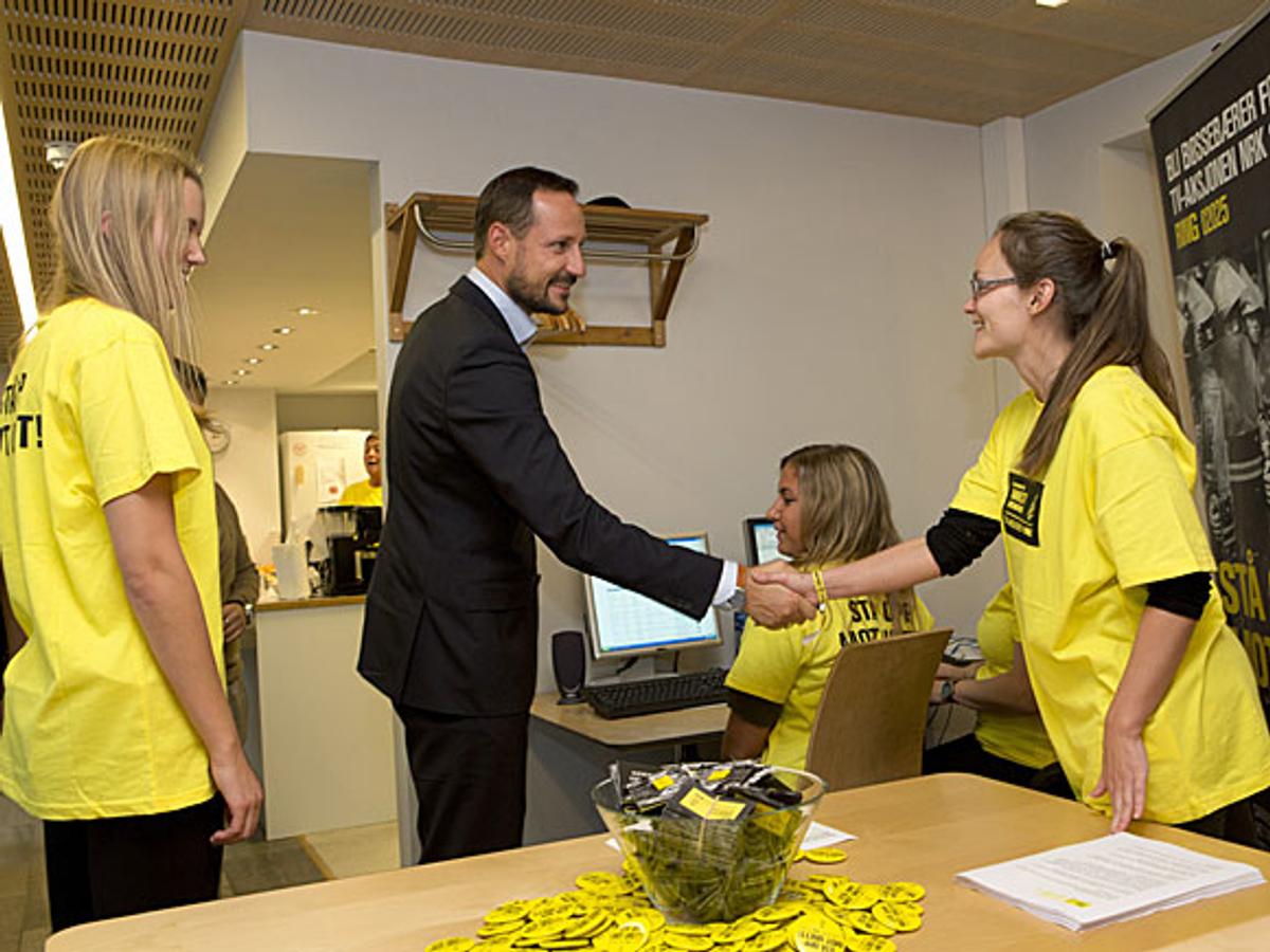 Om to dagar er det klart for årets tv-aksjon. Den Høgvørde Kronprins Haakon besøkte torsdag Stovner Frivillighetssentral, der det vart jobba aktivt med å verve dei siste bøsseberarane og planleggje den store aksjonsdagen.