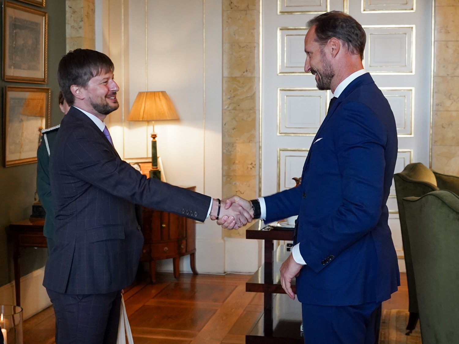 Ukrainske Røde Kors har 10 000 frivillige og ansatte som hver eneste dag er ute og hjelper gamle og unge i landet. Hans Kongelige Høyhet Kronprinsen mottok i dag Maksym Dotsenko, generalsekretæren i Ukrainske Røde Kors, i audiens på Slottet.
