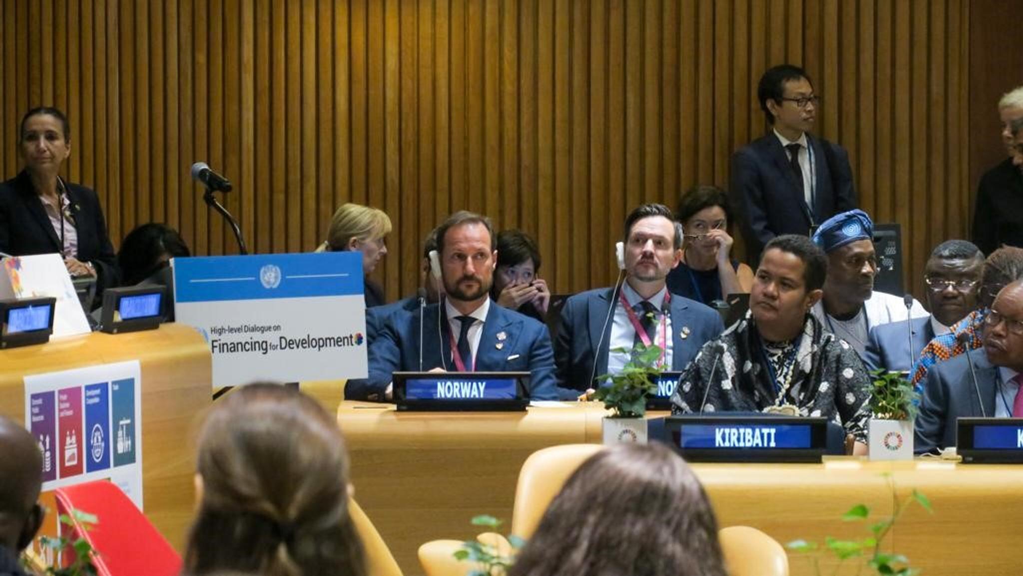 Kronprinsen var også til stede under FNs høynivåmøte om Finansering for utvikling torsdag. Arbeidet for å oppfylle FNs bærekraftsmål er ikke tilstrekkelig finansiert. Norge prioriterer finansiering for utvikling høyt, også i gjennom presidentskapet i ECOSOC - FNs økonomiske og sosiale råd - som ledes av Norges FN-ambassadør, Mona Juul.