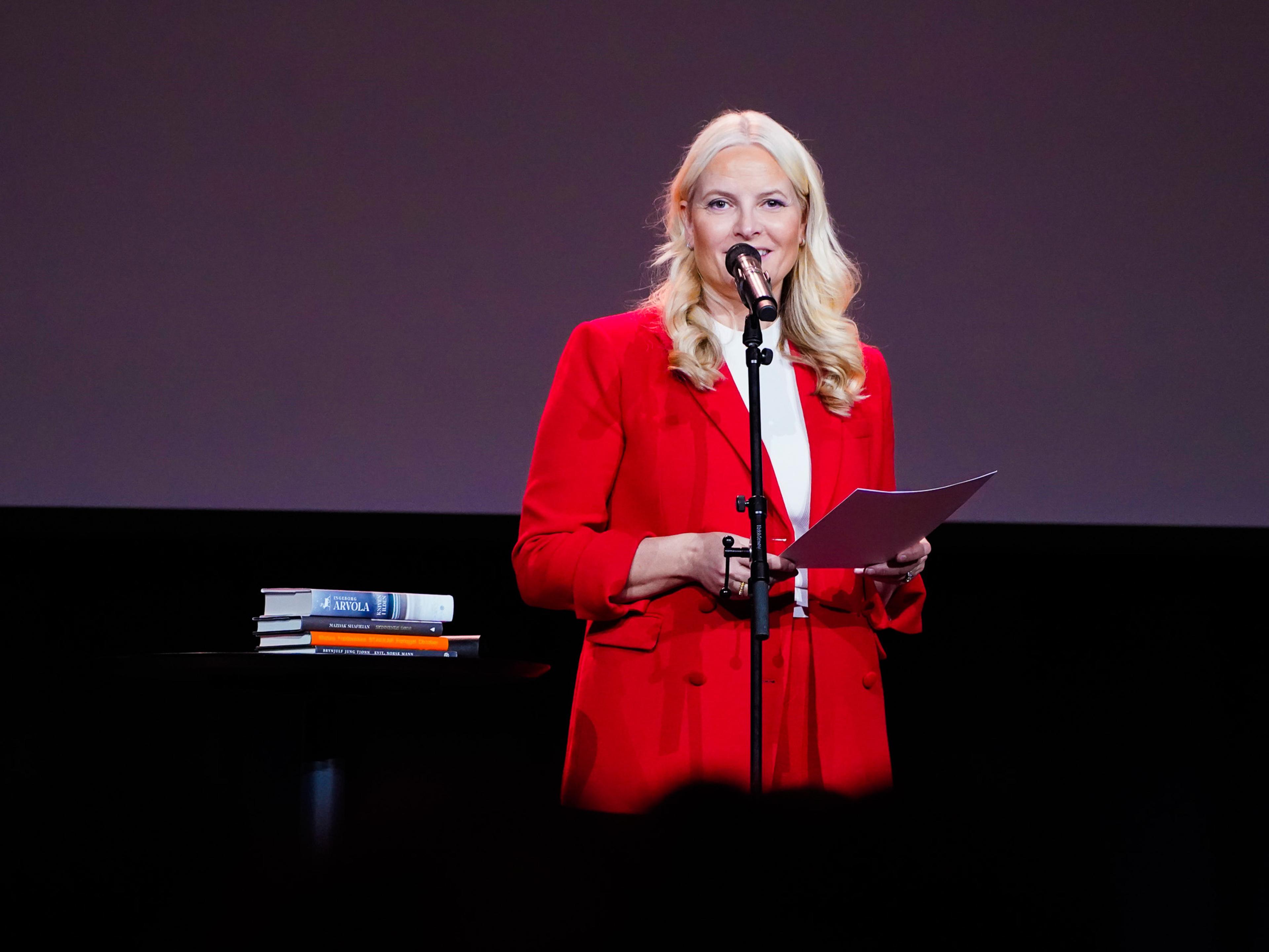Før juryen avslørte vinneren av årets pris, holdt Kronprinsesse Mette-Marit en tale der hun takket juryklassene for den grundige jobben de har gjort med vurderingen av årets bøker.