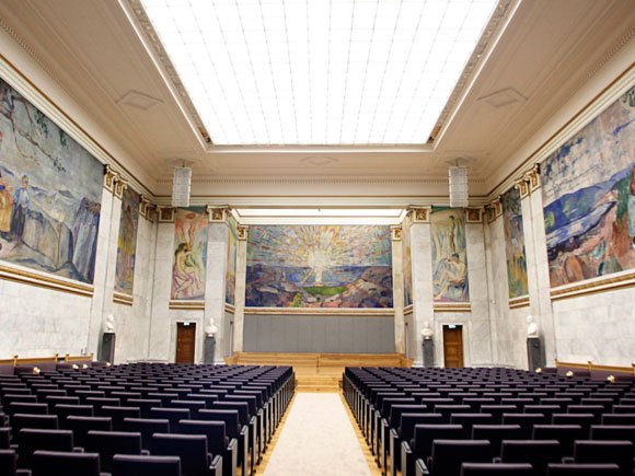 Aulaen ble bygget til Universitetet i Oslos 100-årsjubileum i 1911, og var Oslos storstue og representasjonslokale i mange tiår. Fantastisk akustikk var med på å gjøre aulaen til scene for utallige konserter, og mellom 1947 og 1989 ble også Nobels fredspris delt ut her.