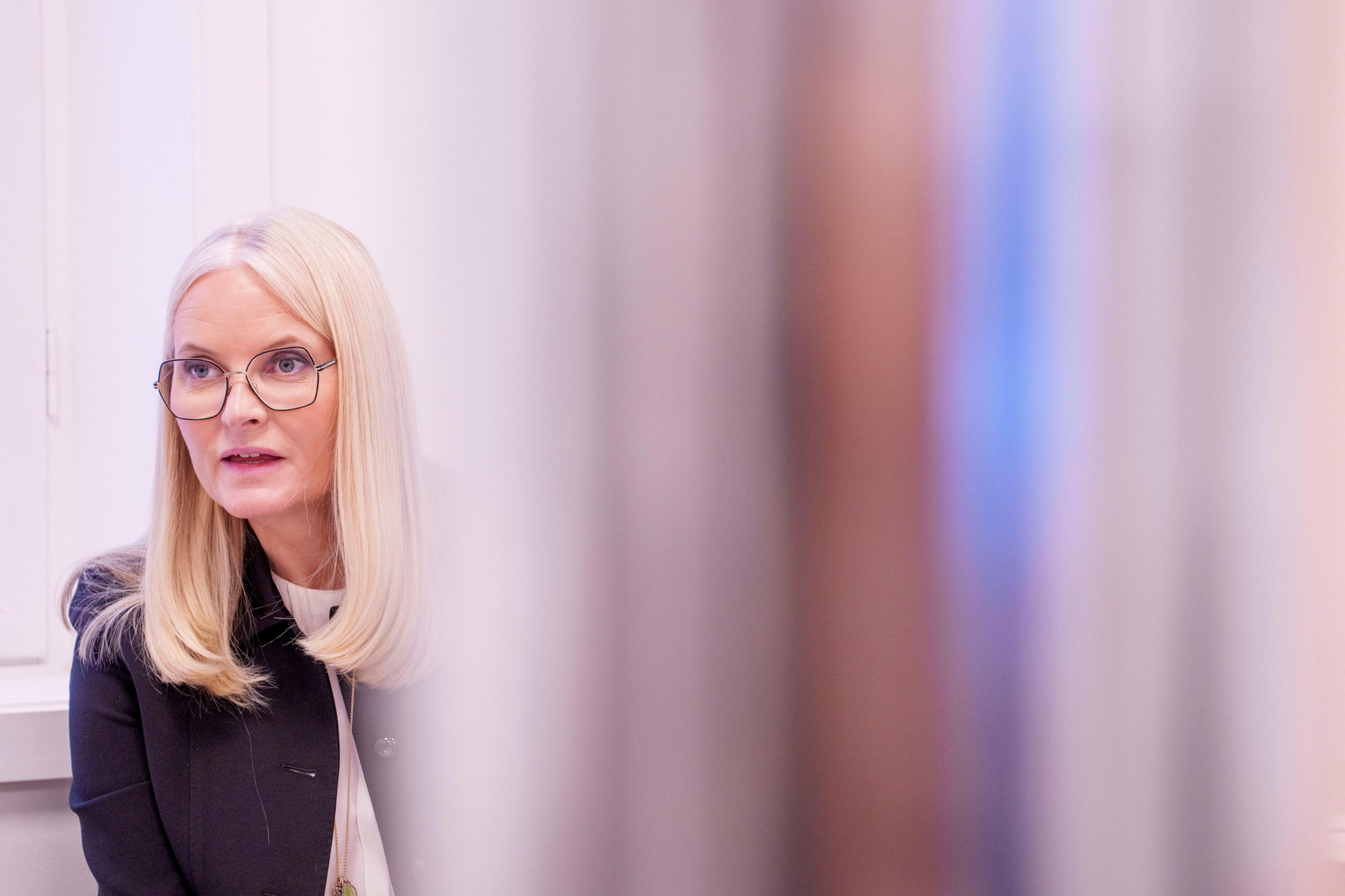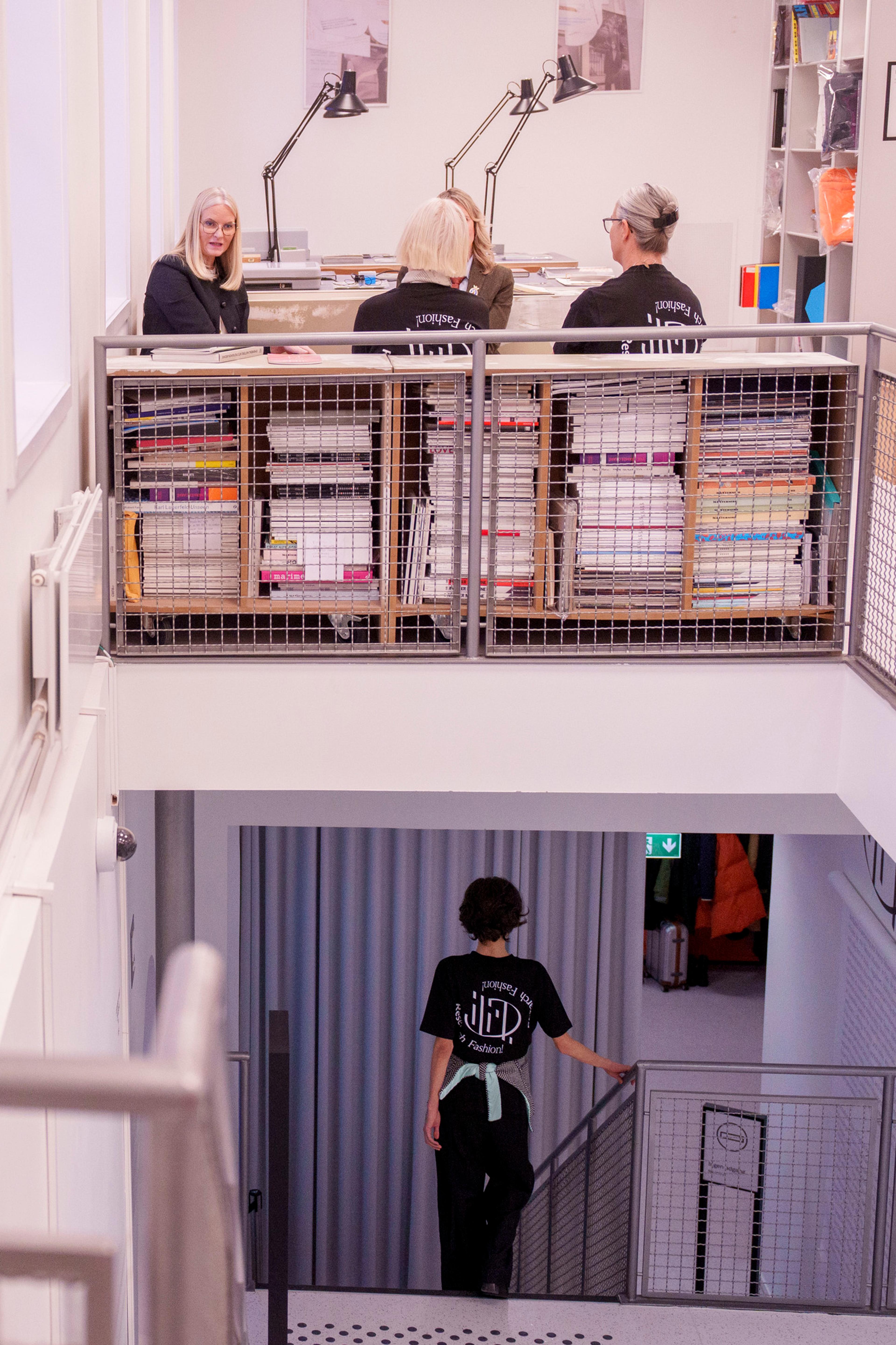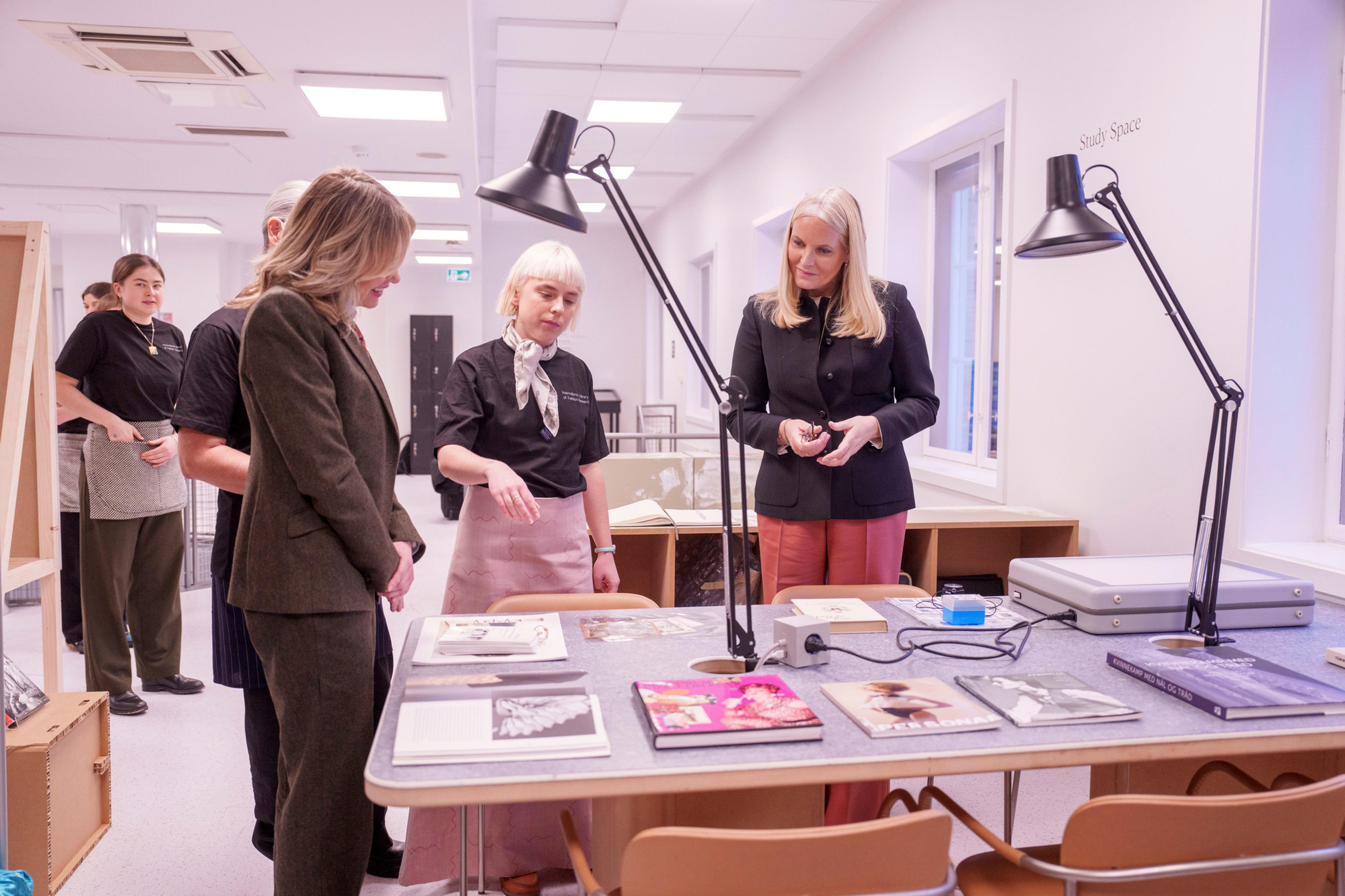 Hennes Kongelige Høyhet Kronprinsesse Mette-Marit besøkte motebiblioteket International Library of Fashion Research i Oslo.