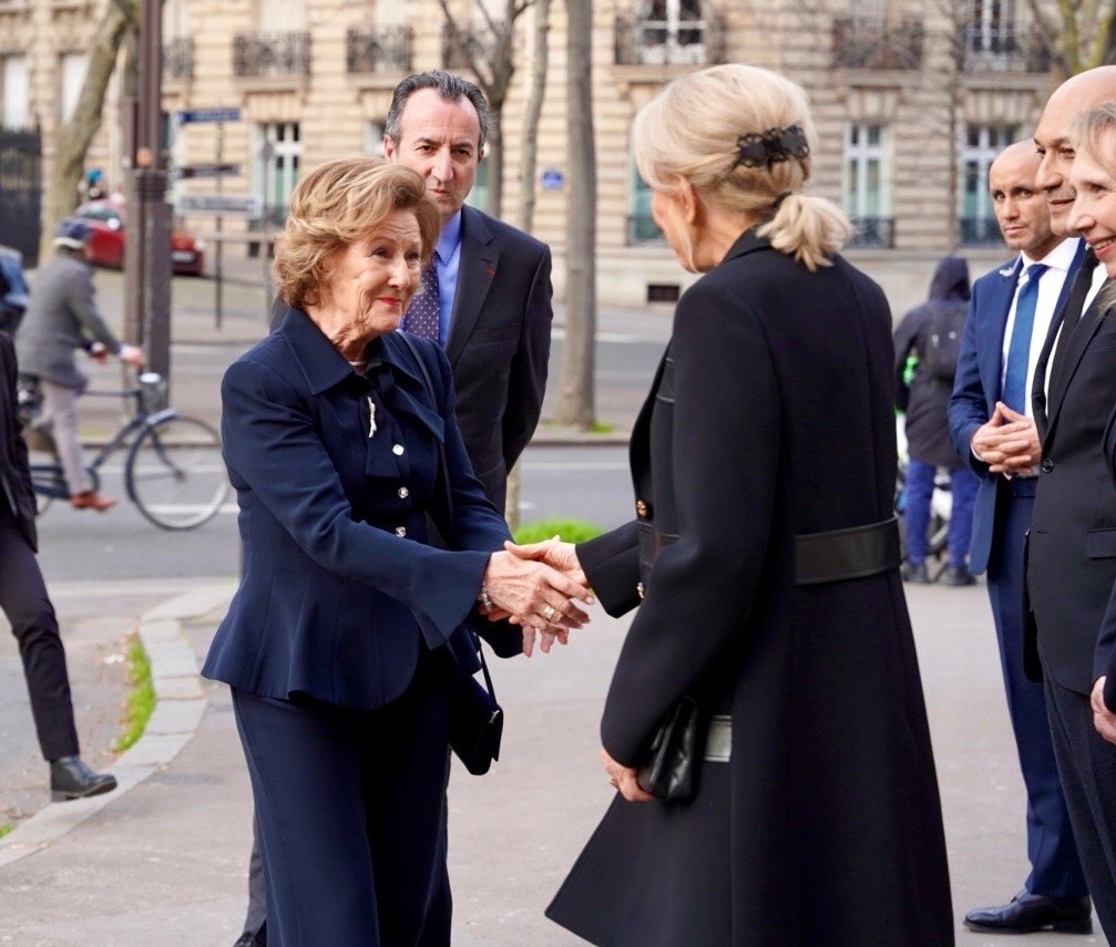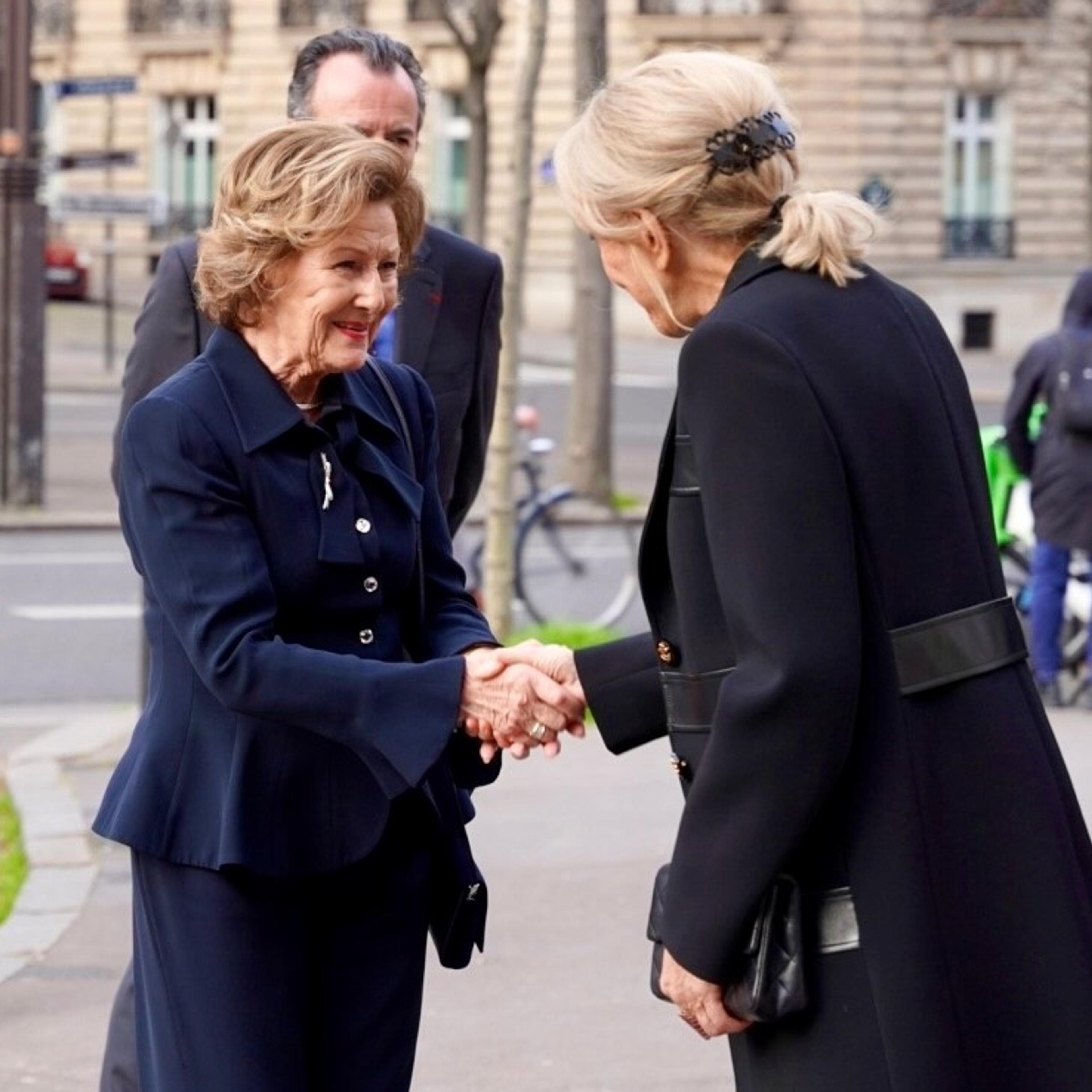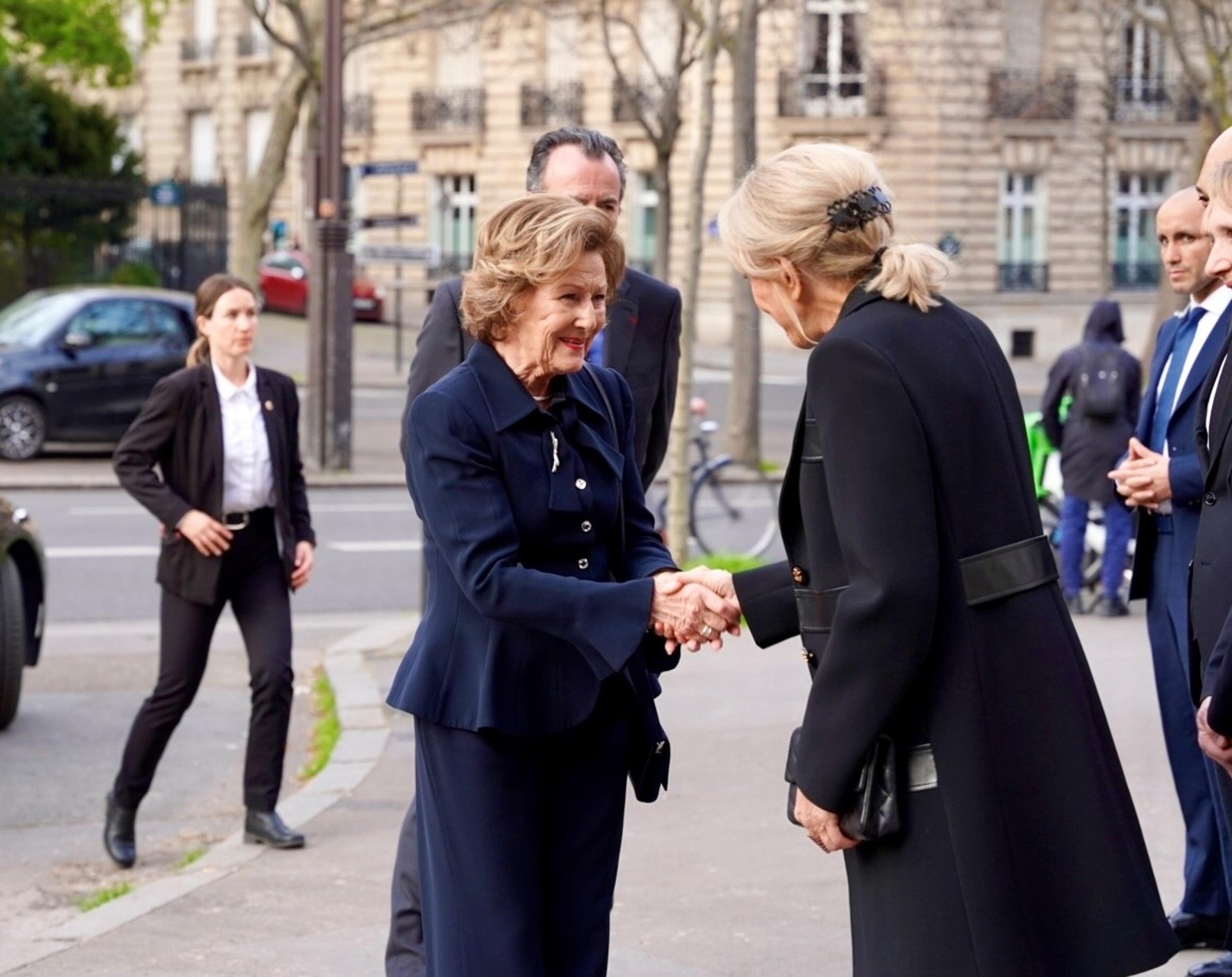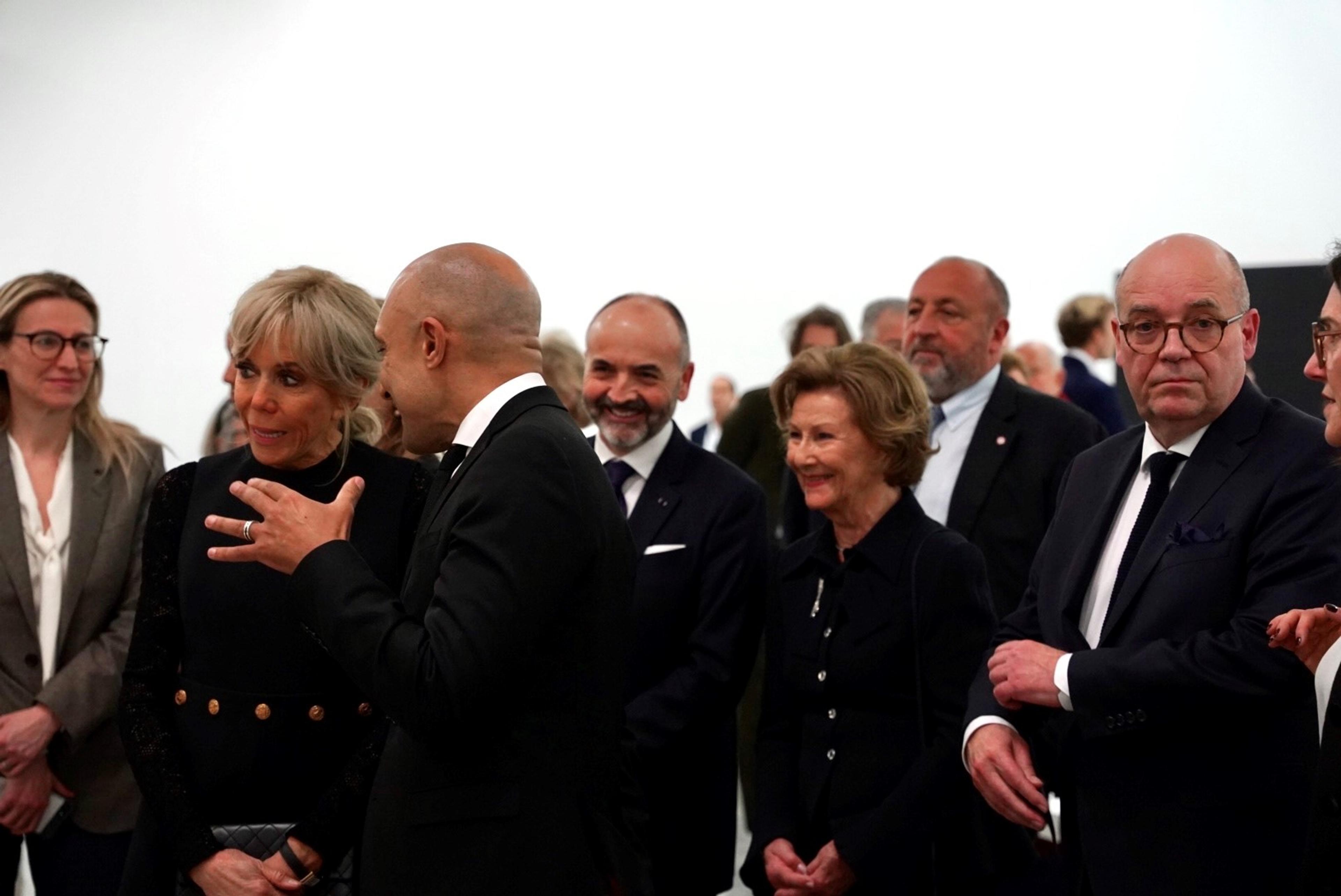 Dronningen ble ønsket velkommen til museet av museumsdirektør Fabrice Hergott, kurator av utstillingen Hèléne Leroy og leder for gruppen av museets støttespillere Jean-Paul Agon.