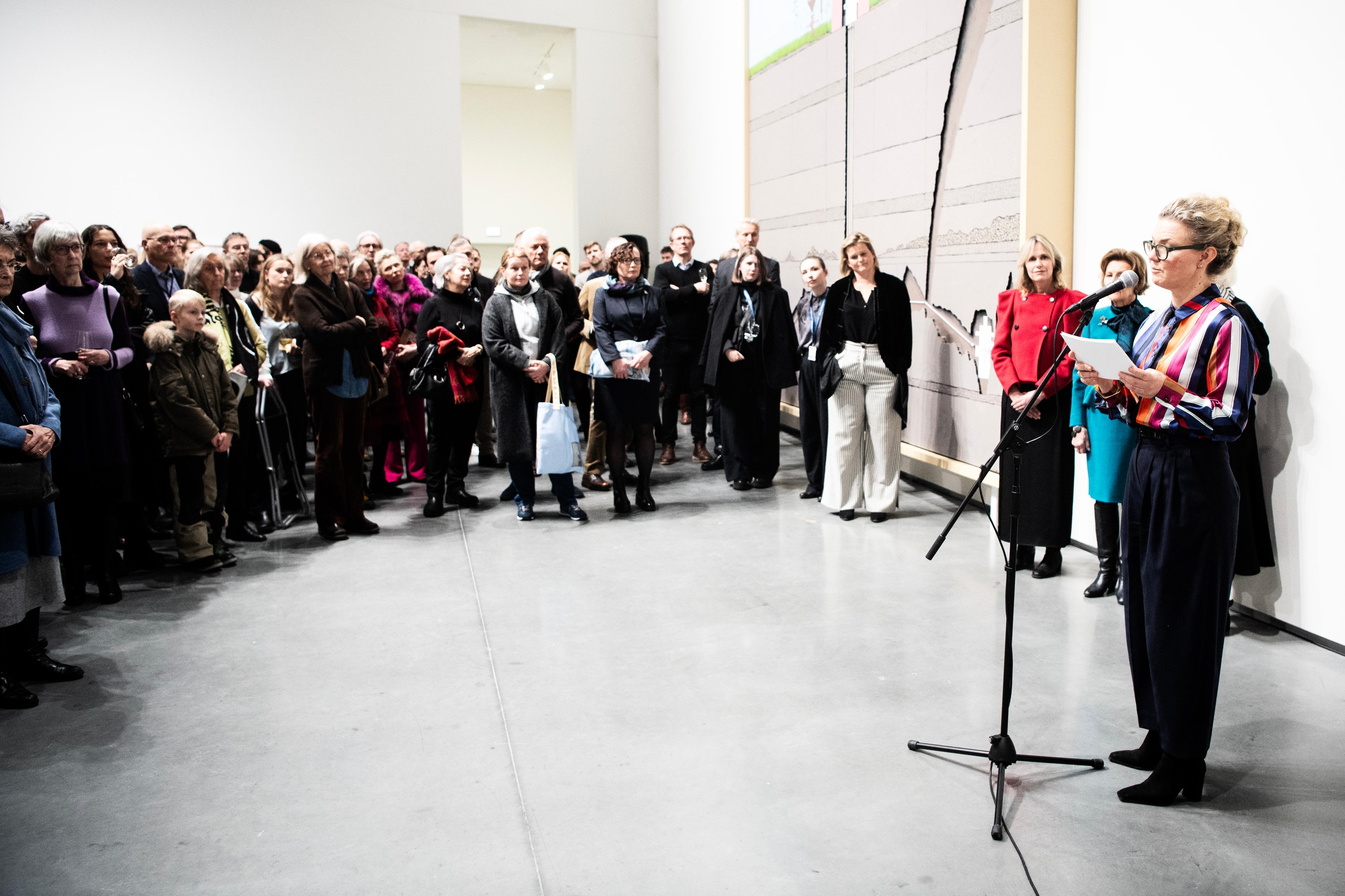 Ved utstillingsåpningen på Astrup Fearnley ble Dronningen tatt imot av museets direktør og kurator for utstillingen Solveig Øvstebø. Øvstebø holdt tale og åpnet utstillingen under arrangementet. Dronningen ble også ledsaget av ordfører i Oslo Anne Lindboe.