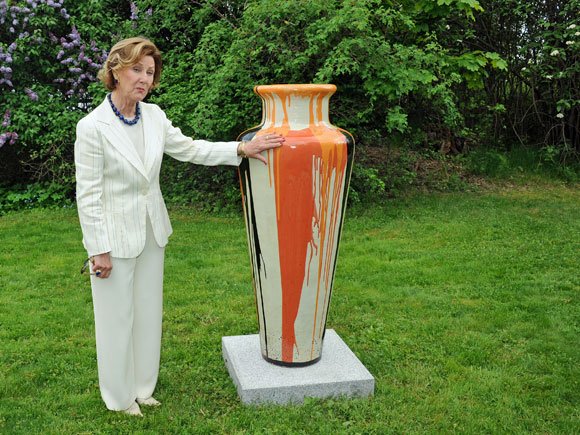 Galleriet er ein del av publikumstilbodet ved Oscarshall. Under presentasjonen av utstillinga i kveld viste òg Dronninga ei keramikkrukke frå sin eigen produksjon. Krukka vil vere ei permanent utsmykking på plenen utanfor Galleri Dronning Joséphine.
