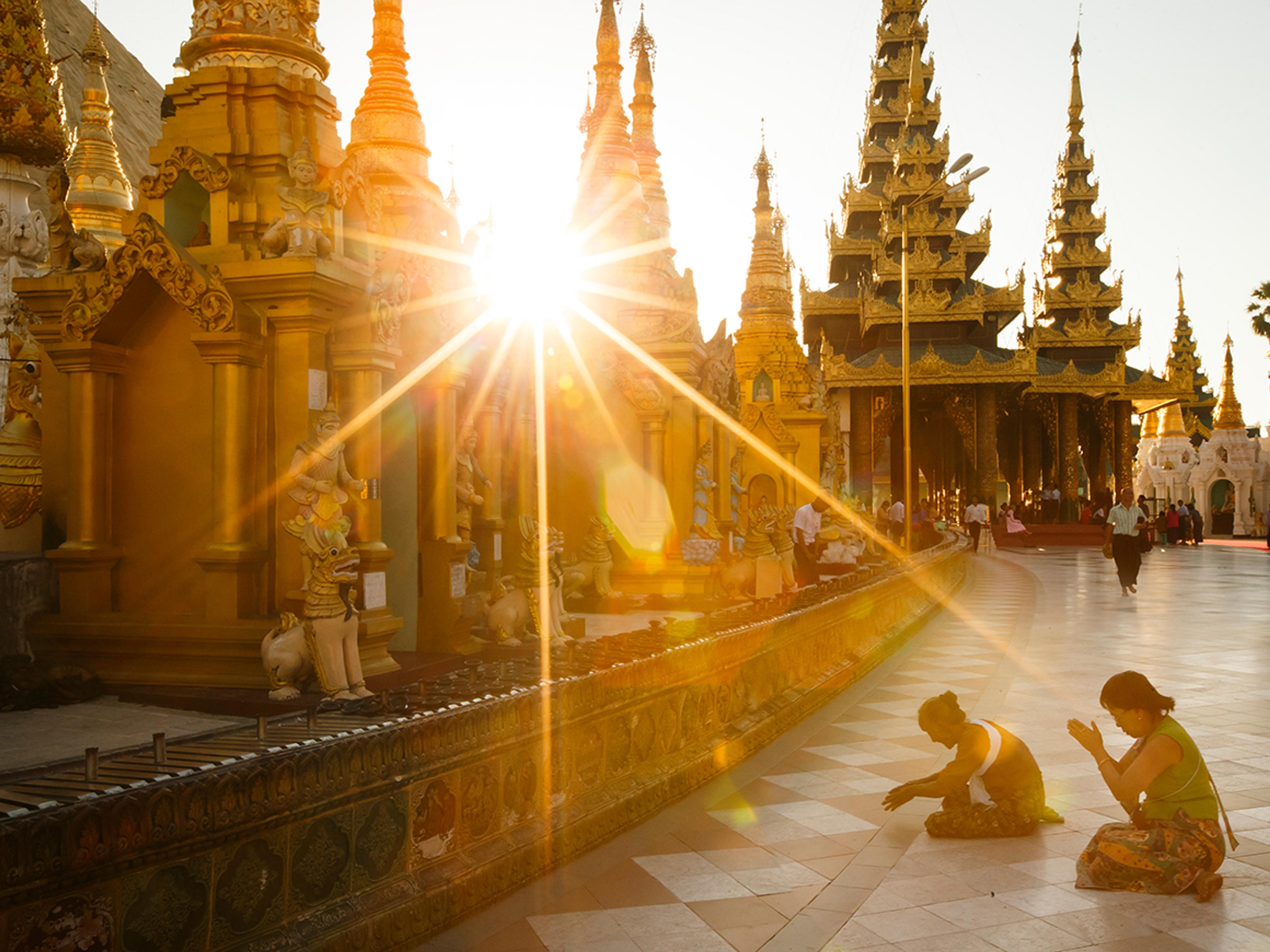 Shwedagon-pagoden vart reist på denne heilage staden til ære for desse buddhaene – og relikviar knytte til den siste buddhaen, Siddharta Guatama. Pagoden var eit velkjent landemerke alt på 1000-talet.