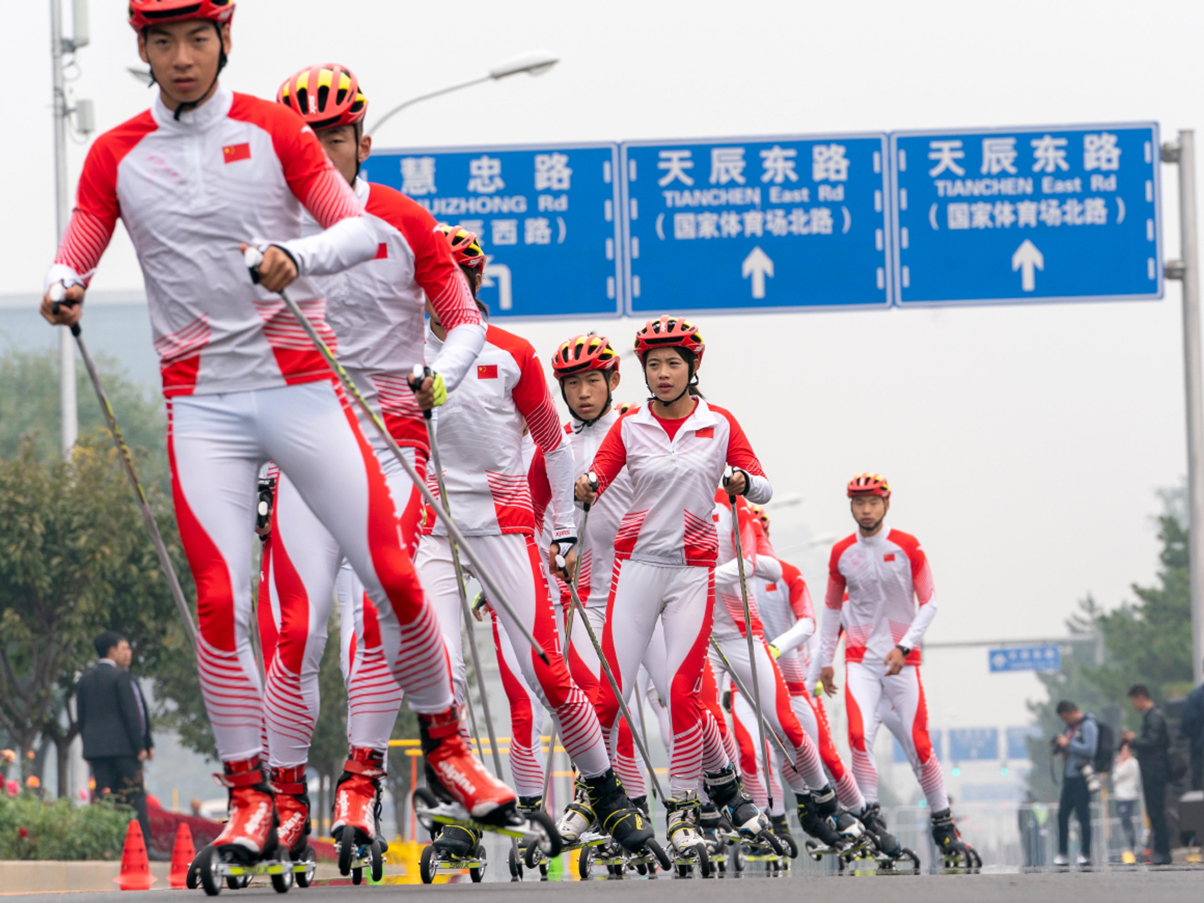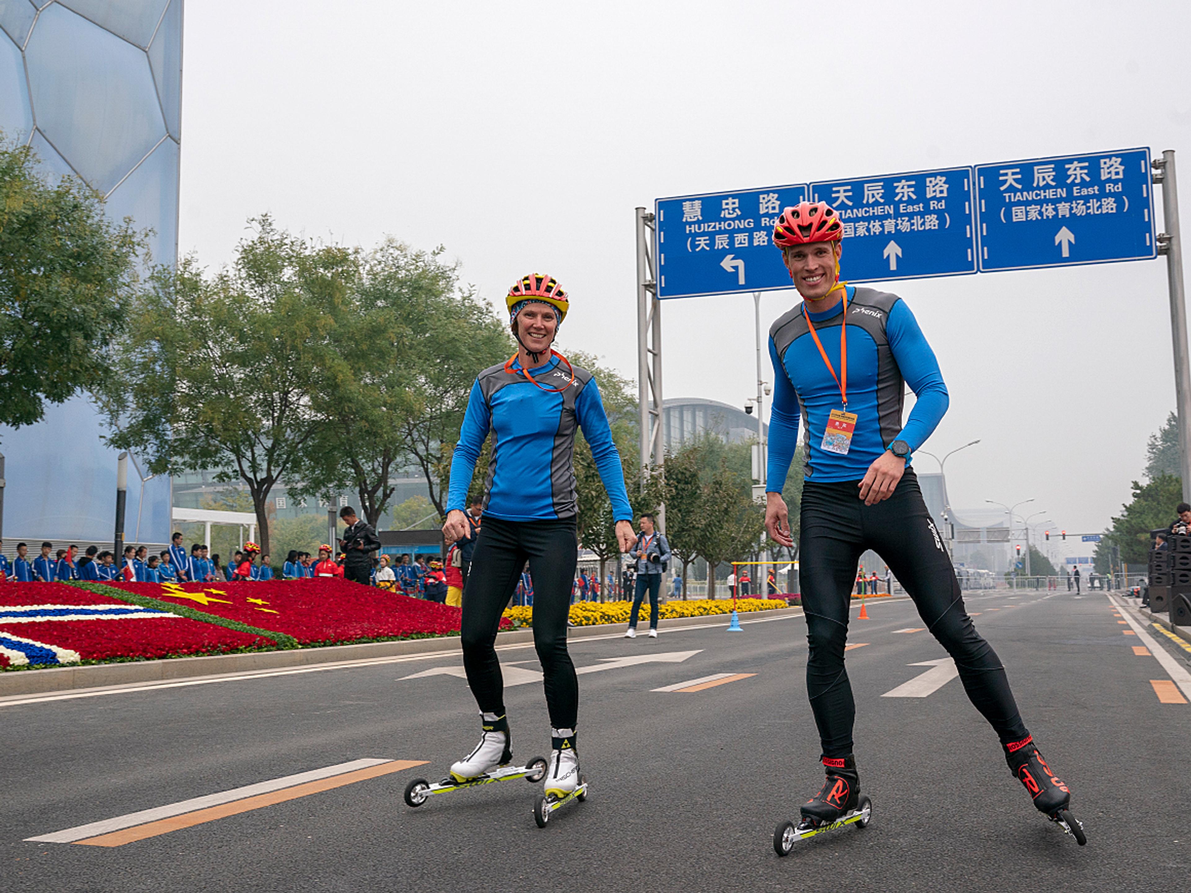 Opp mot hundre kinesiske barn fikk prøve seg på rulleski, godt hjulpet av instruktører fra Norges idrettsforbund. Flere kinesiske og norske skiløpere demonstrerte sine kunster, før det hele kulminerte i stafett med en god blanding av norske og kinesiske deltakere på lagene.