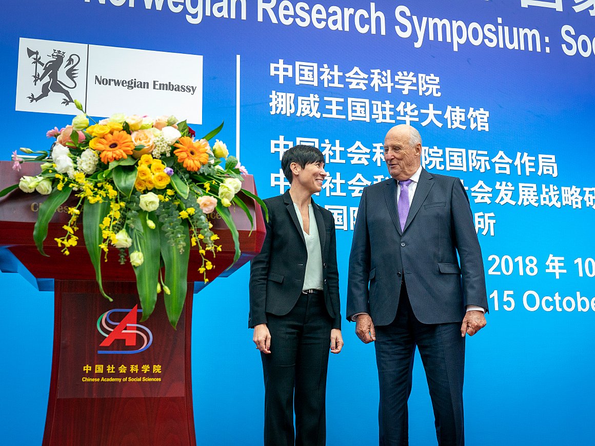 Kong Harald åpnet det første norsk-kinesiske symposiet innen samfunnsfag i regi av CASS og NUPI – Norsk utenrikspolitisk institutt. Symposiet vil bli en fast begivenhet som skal ta for seg FNs internasjonale bærekraftmål, med utvalgte tema hvert år.