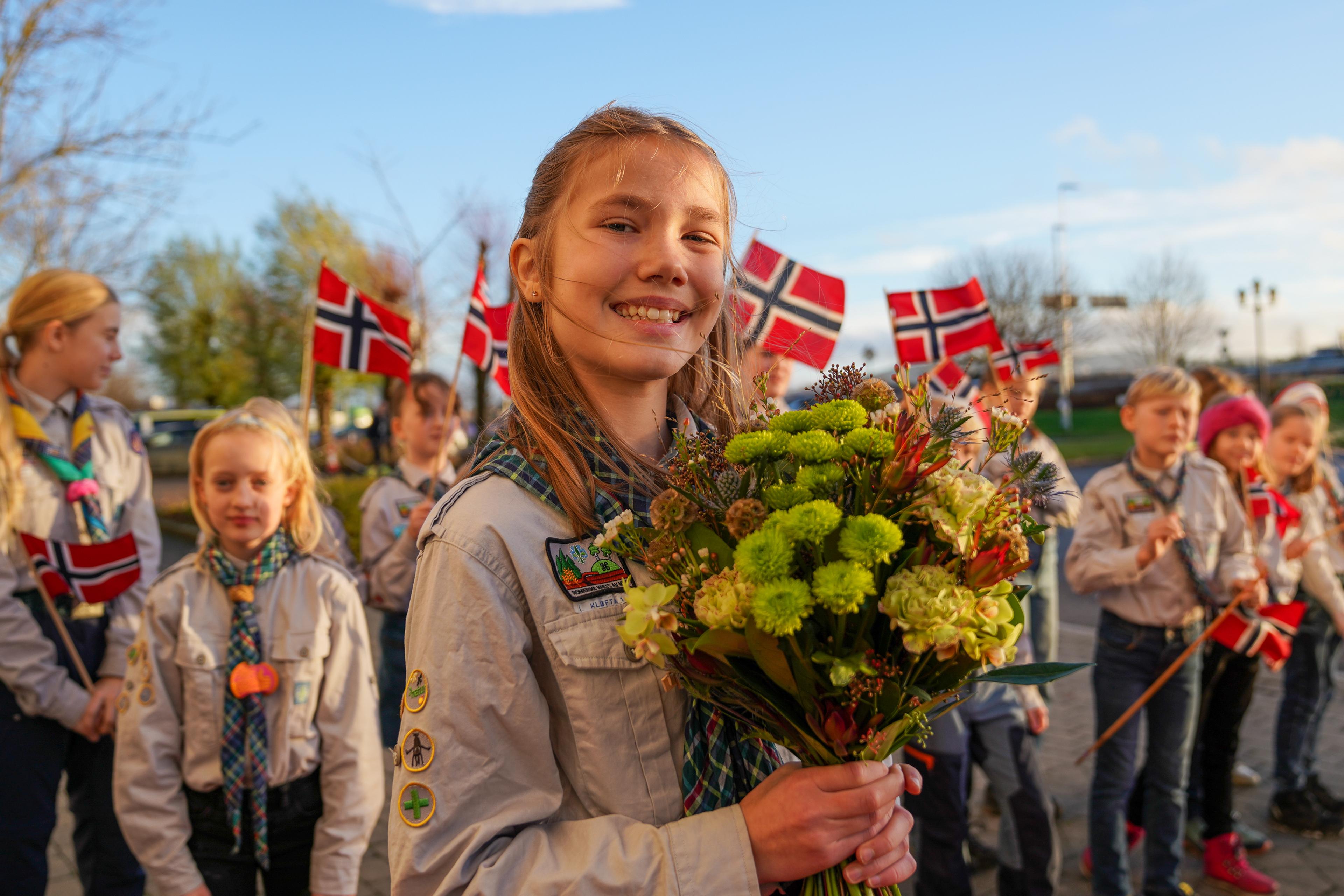 Utanfor møtelokalet vart Kronprinsessa motteken av lokale speidarar frå Lillestrøm-området. Dei hadde teke på seg speidartøyet og kunne fortelje Kronprinsessa at dei gledde seg til helg, for da skulle dei ut på tur.