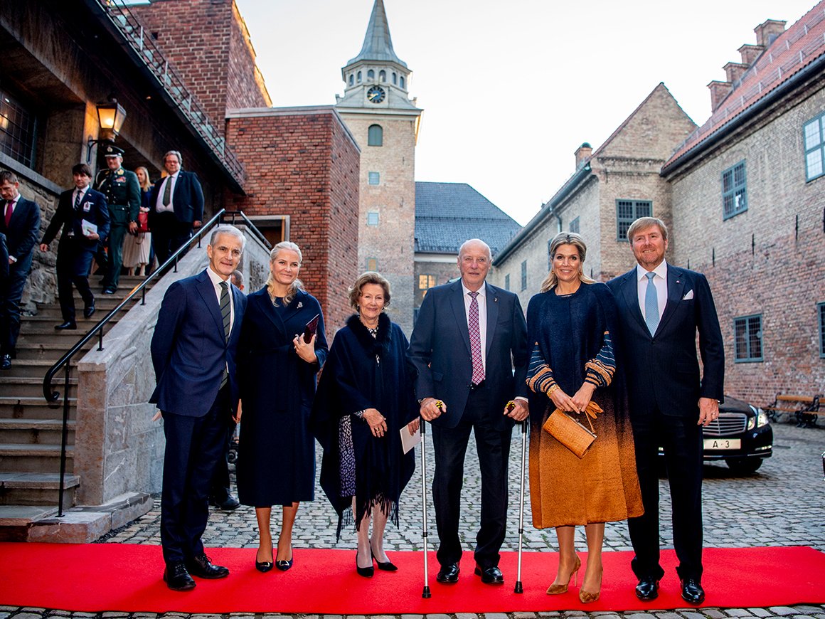 Kong Harald, Dronning Sonja og Hennes Kongelige Høyhet Kronprinsesse Mette-Marit var også til stede ved lunsjen, der Kong Willem-Alexander og den norske statsministerens taler understrekte det nære forholdet mellom våre to land.