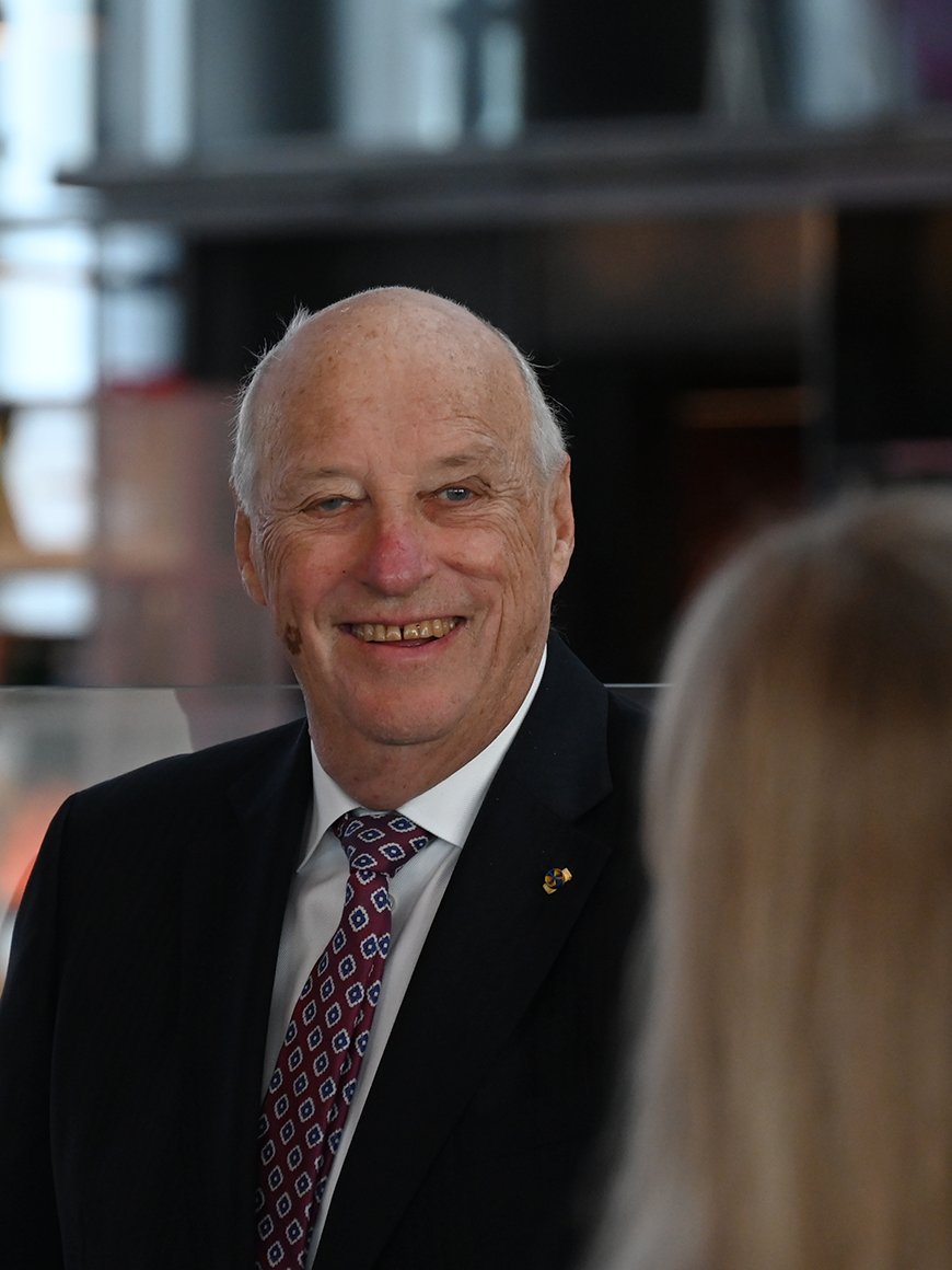 Seminaret fant sted i Oslos nye hovedbibliotek, som tidligere i høst ble kåret til til verdens beste folkebibliotek av den internasjonale bibliotekorganisasjonen IFLA. Biblioteksjef Knut Skansen orienterte Kongeparene om biblioteket.