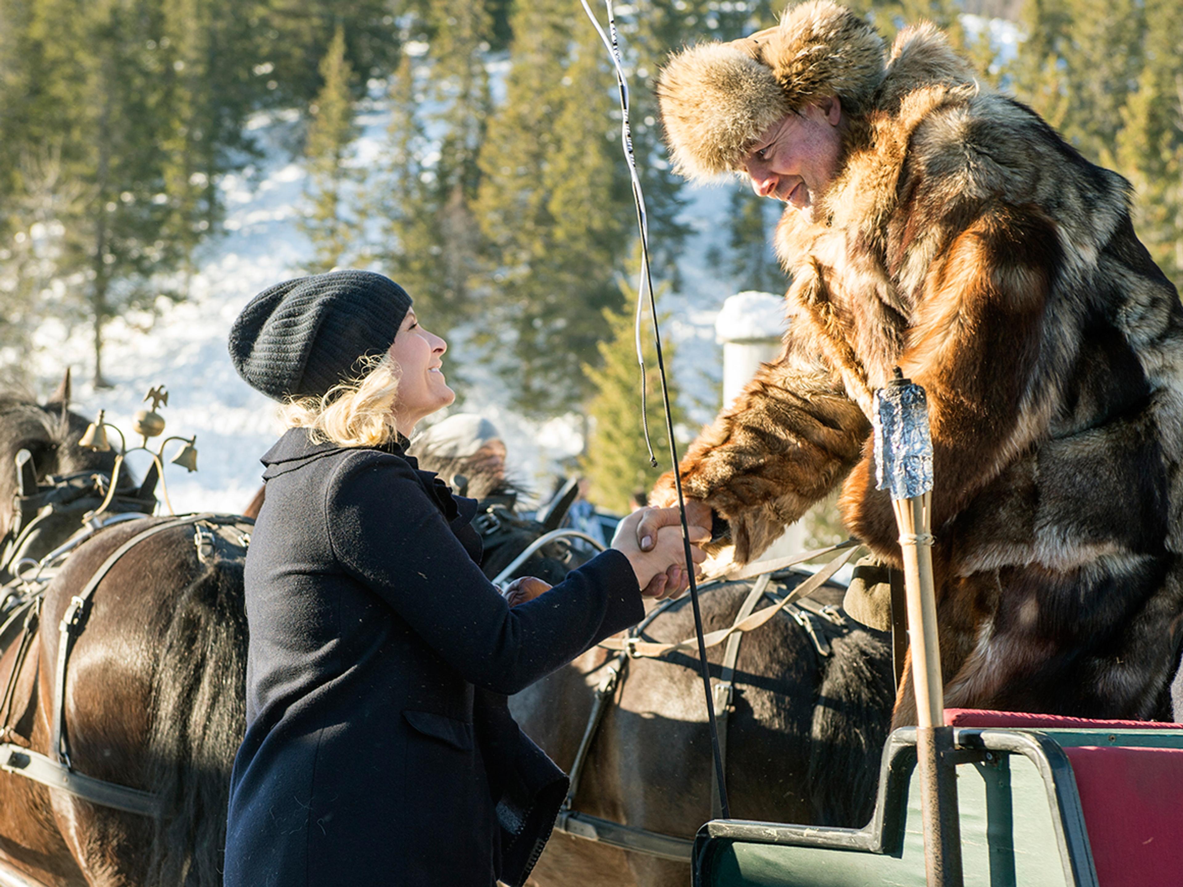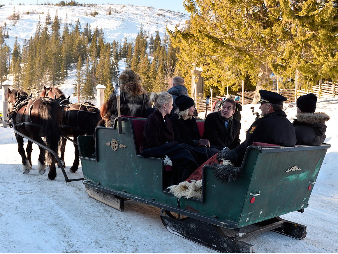 En større delegasjon fra inn- og utland ankom Skistua med hest og slede. Det var blå himmel og minusgrader. Inne ble det servert varm kakao, vafler, rømmegrøt og annen norsk tradisjonsmat.