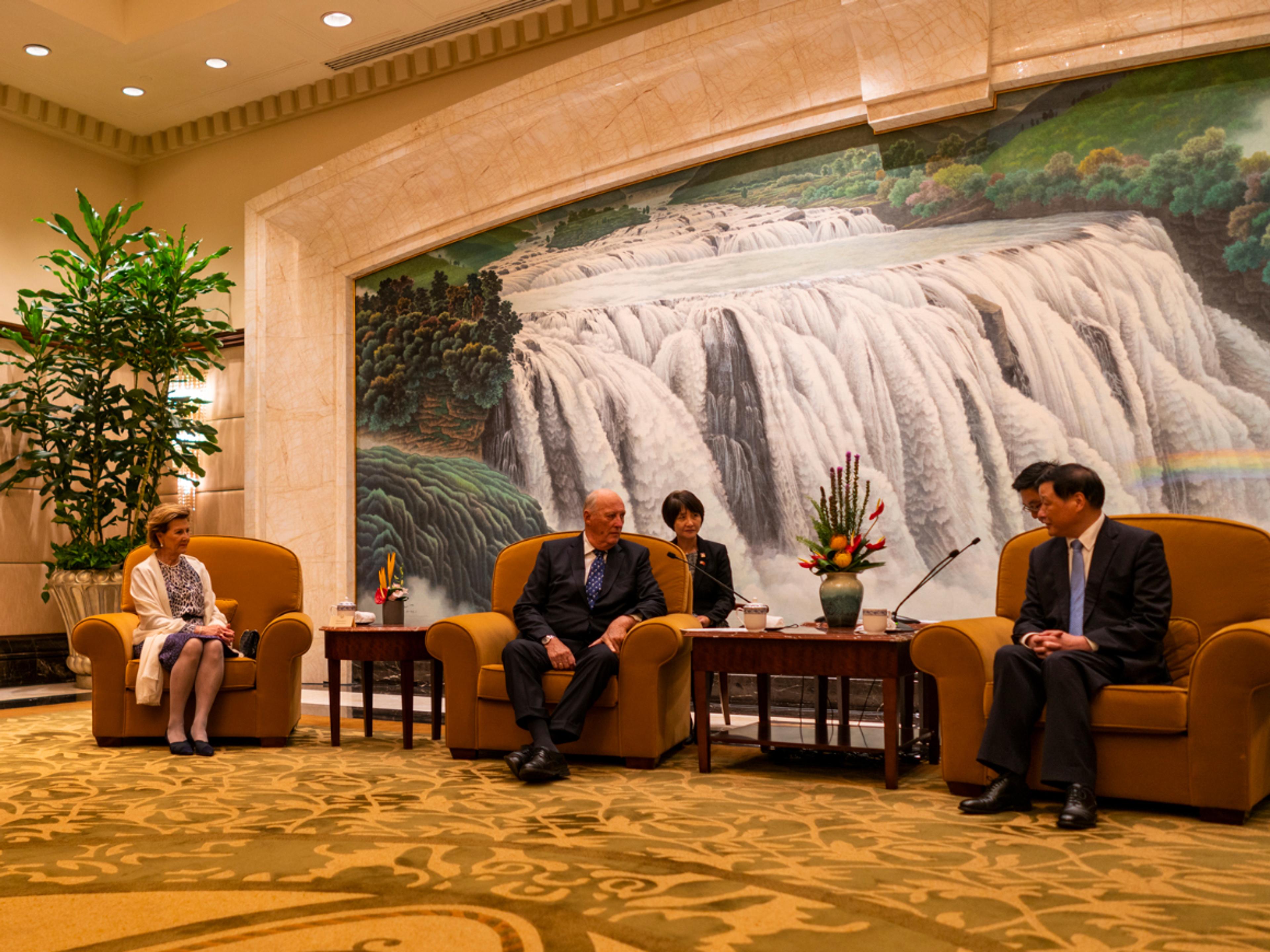 Kong Harald og Dronning Sonja møtte også med lokale myndigheter i dag. Samtaler med Shanghais ordfører Ying Yong og partisekretær Li Qiang ble etterfulgt av en offisiell middag på Xingguo Hotel.