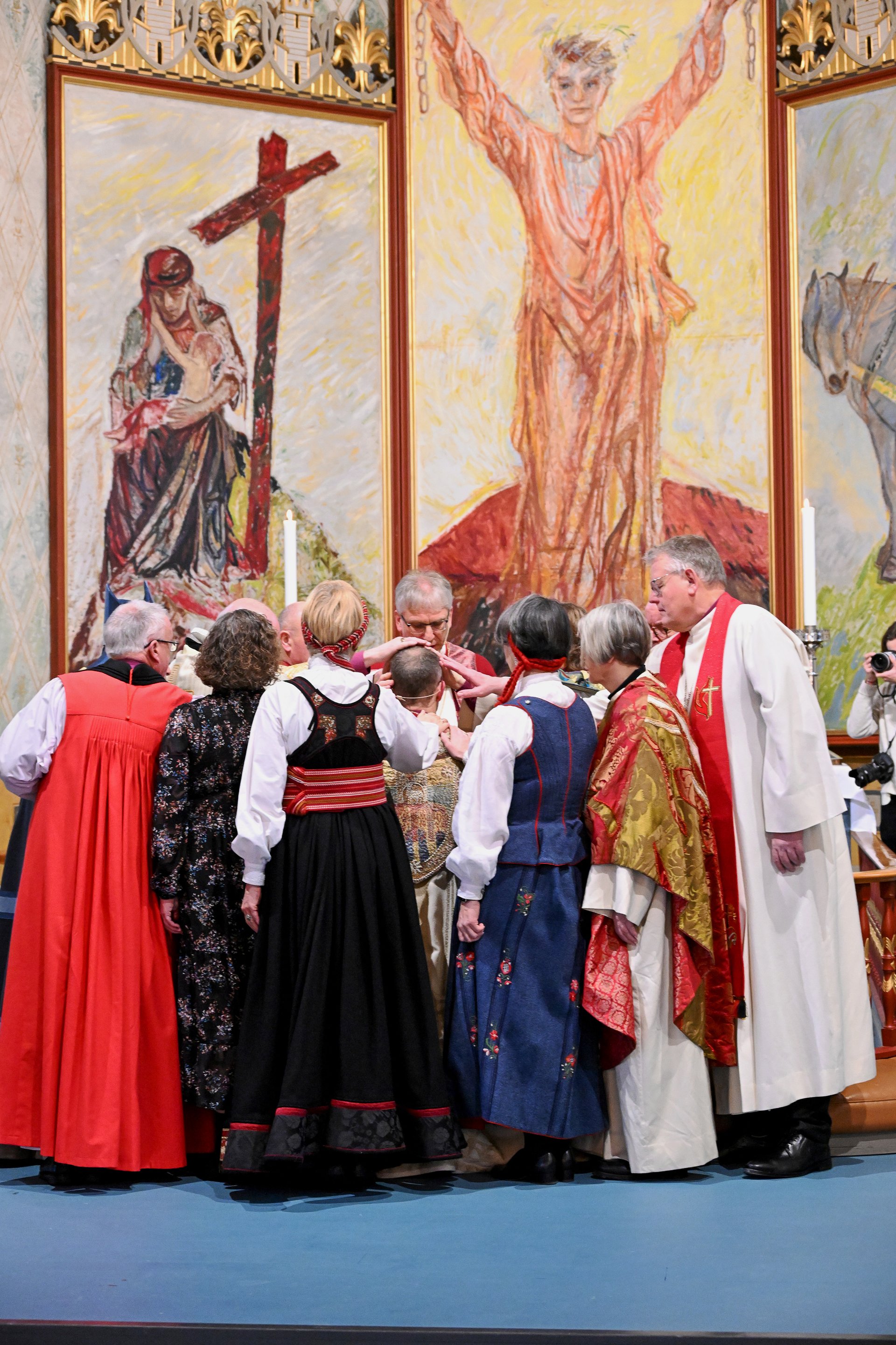 Biskoper og prester fra inn- og utland deltok i forbønnen. Ole Kristian Bonden avla bispeløftet for preses, som la bispekorset rundt halsen hans som et synlig tegn på at han nå er vigslet til biskop i Den norske kirke.