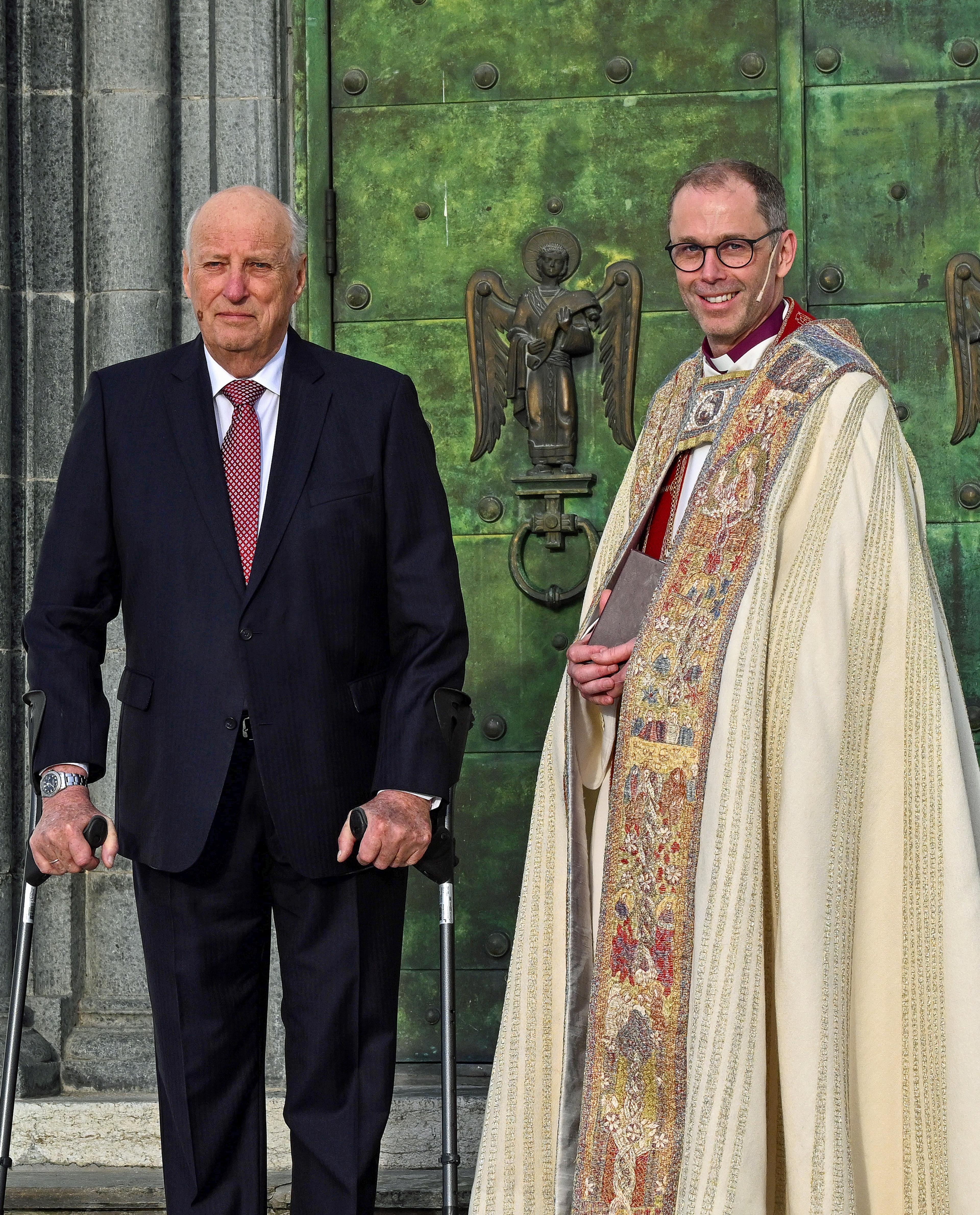 Kong Harald ble tatt imot på kirketrappen og ledsaget inn i domkirken av preses i bispekollegiet, biskop Olav Fykse Tveit. Deretter fulgte den kirkelige prosesjonen med blant annet den nye biskopen i Hamar.