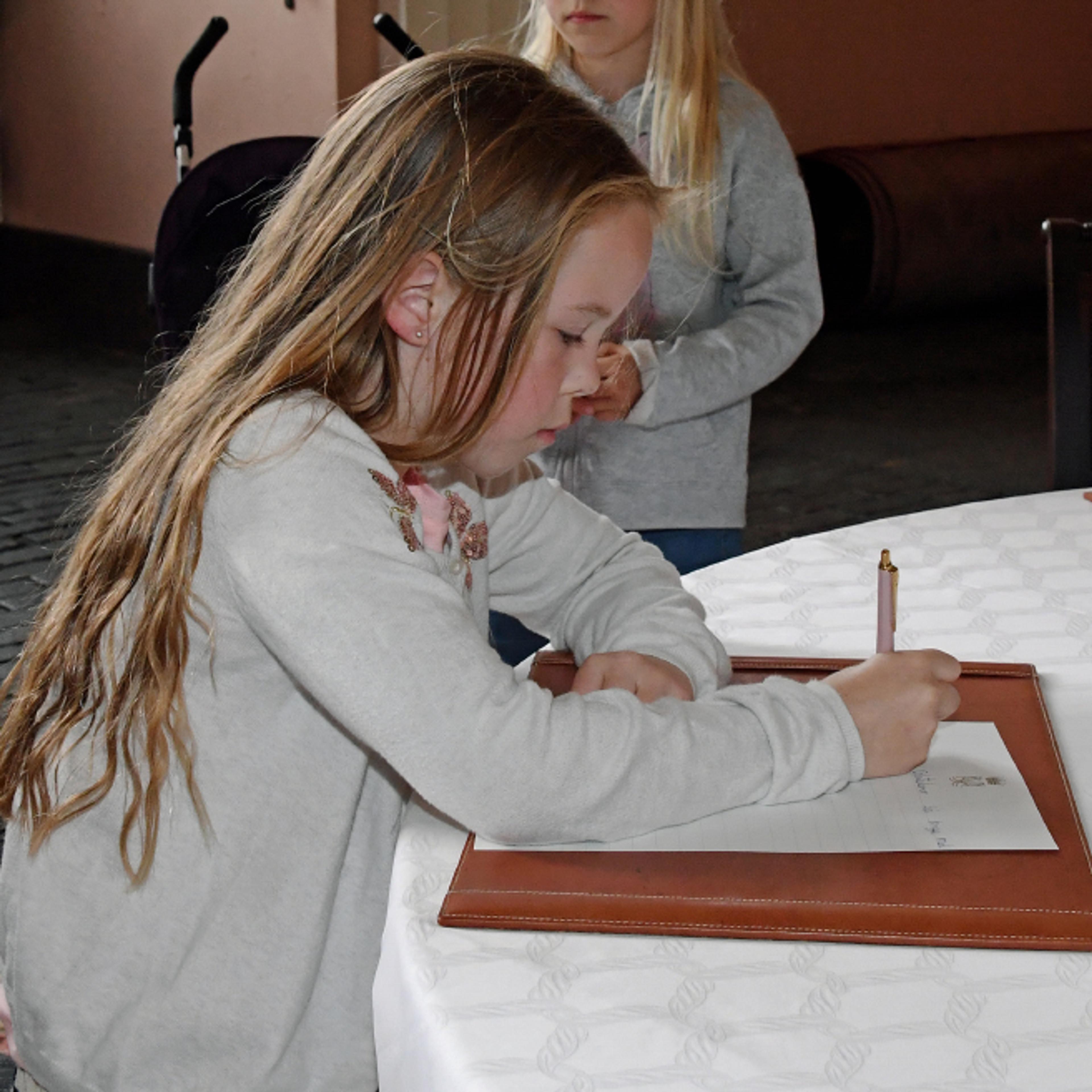 På Det kongelige slott er protokollskrivingen i full gang. Alle som har ønske og anledning til å møte fram på Slottet har anledning til å skrive seg inn i den offisielle gratulasjonsprotokollen som legges fram der.