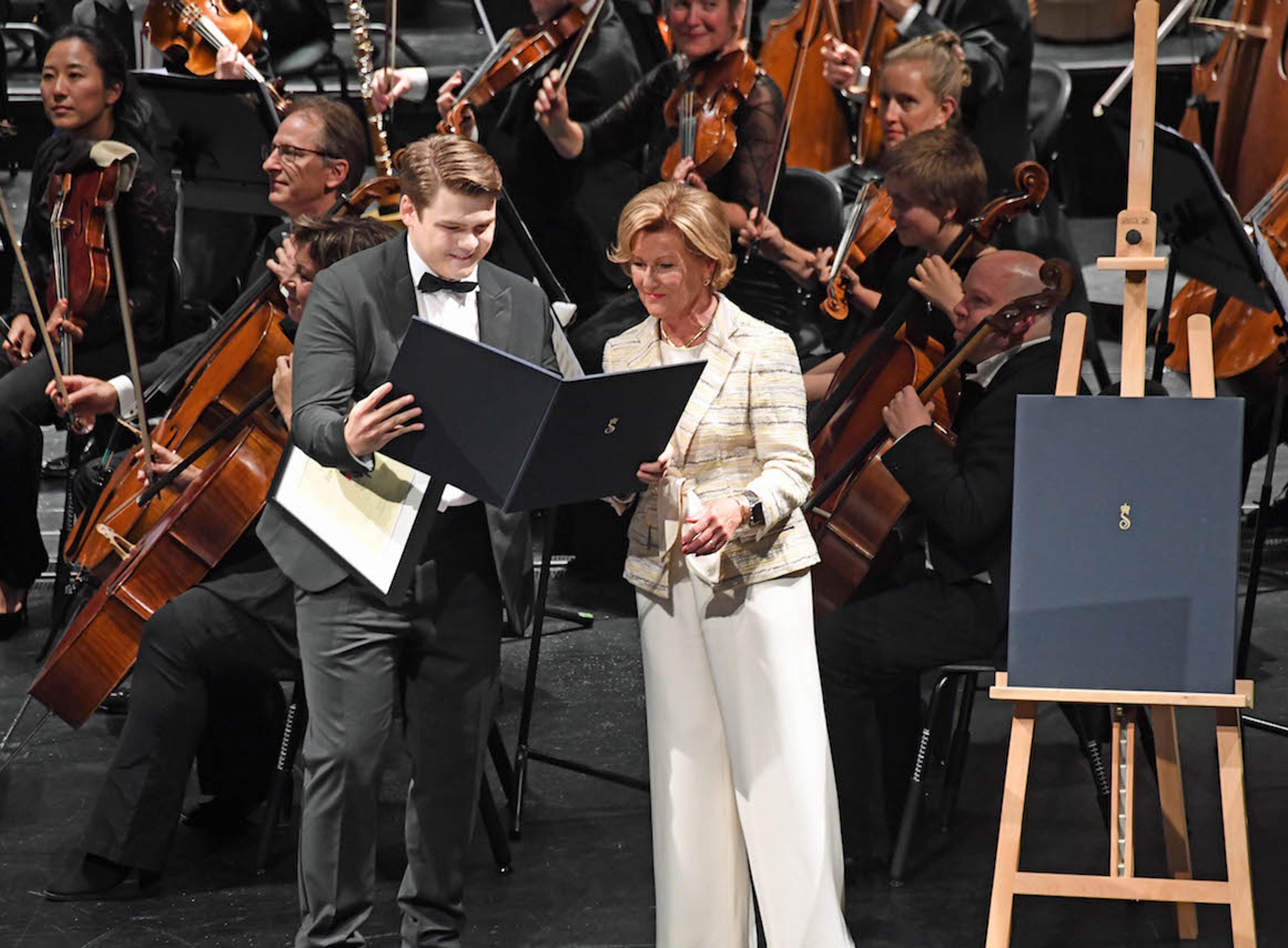 Den russiske barytonen Sergey Kaydalov gjekk sigrande ut av finalen i Dronning Sonja Internasjonale Musikkonkurranse 2019 fredag kveld. Hennar Majestet Dronninga overrekte sjølv prisen til vinnaren.