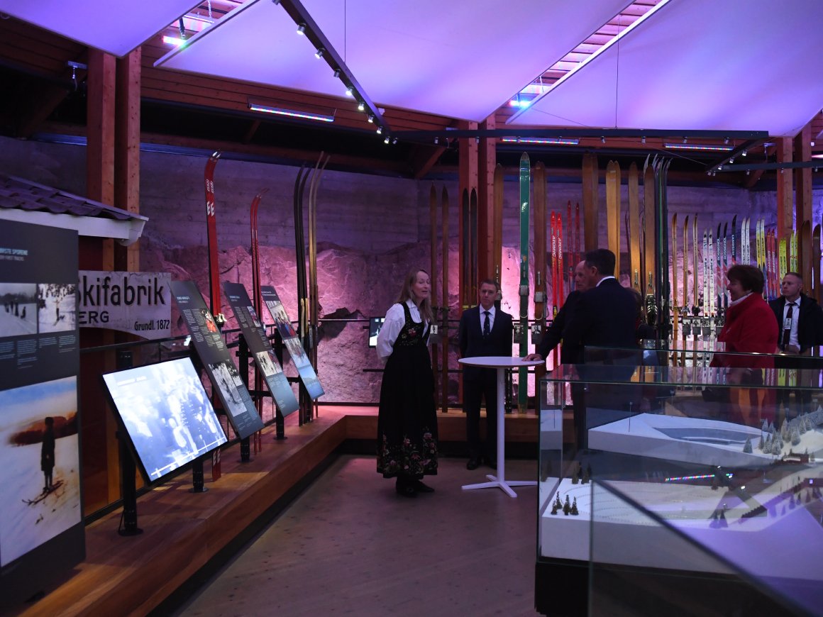 I dag åpnet en utstilling om slovensk alpearkitektur i Skimuseet. Det ble også anledning til en omvisning i skimuseets utstilling om polarekspedisjonene - og Kongefamiliens tilknytning til Holmenkollen.