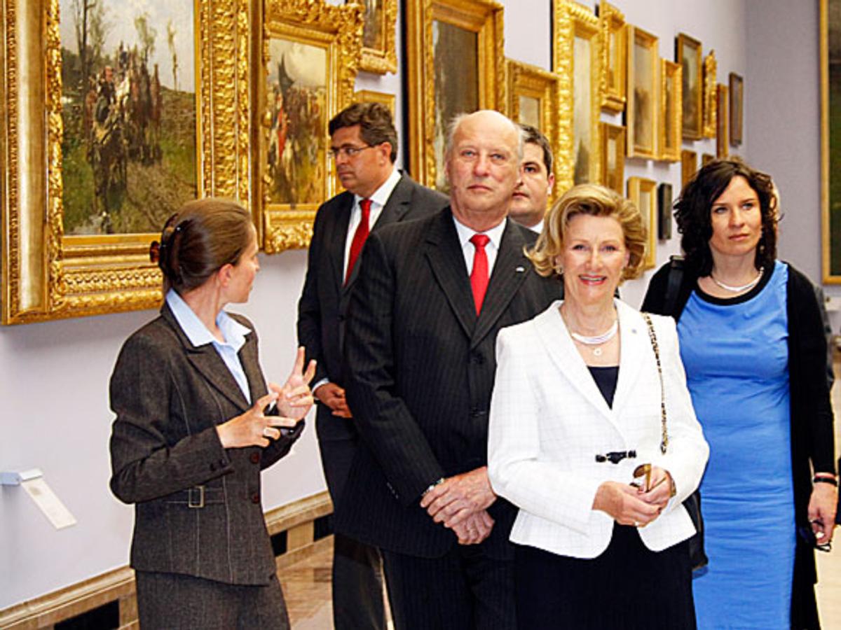 Kongen og Dronningen fikk se noen av de viktigste maleriene i samlingen her.