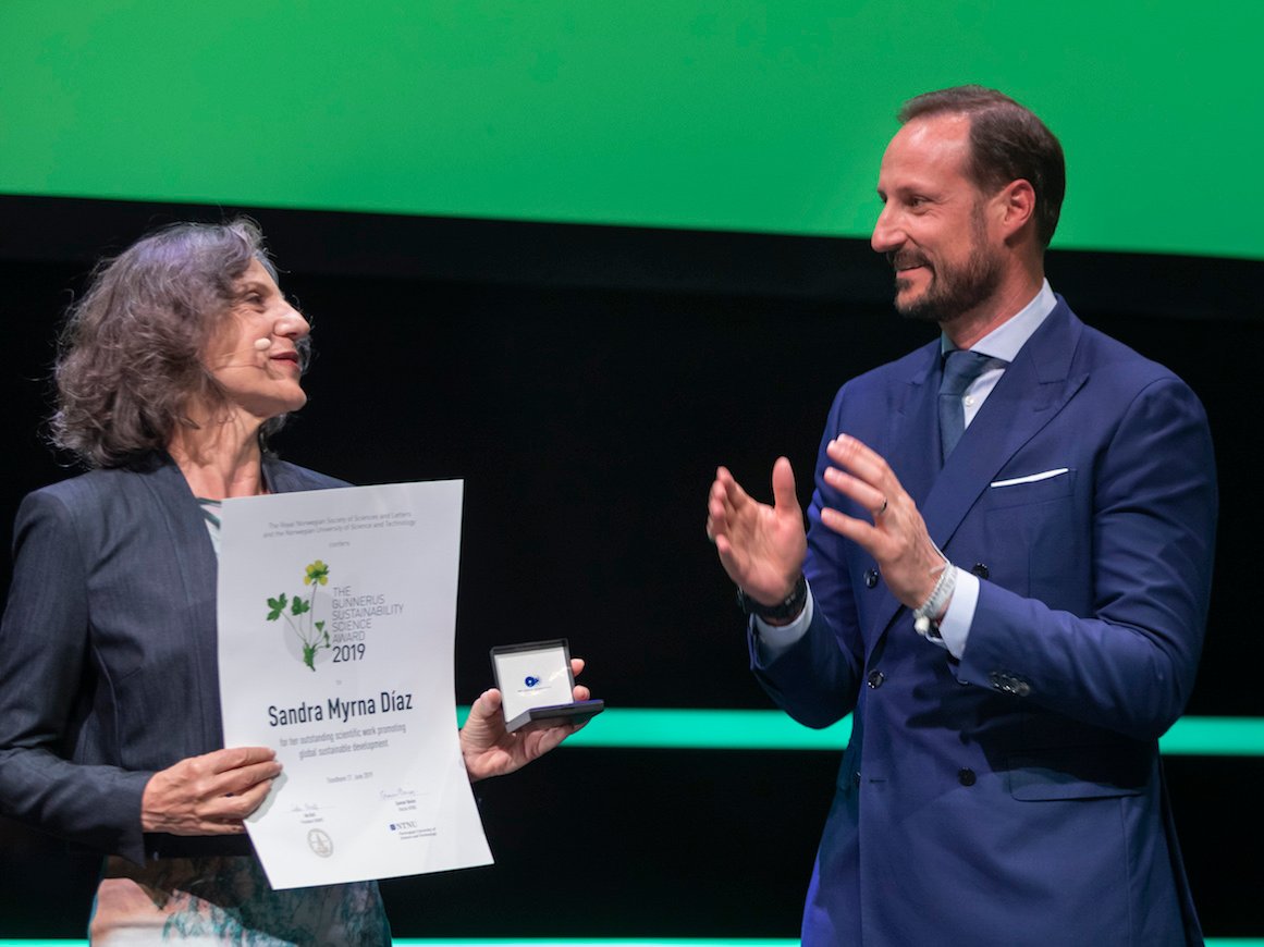 Hans Kongelige Høyhet Kronprinsen besøkte vitenskapsfestivalen The Big Challenge i Trondheim i dag. Her delte han ut Gunnerusprisen i bærekraft til økologiprofessor Sandra M. Diaz.