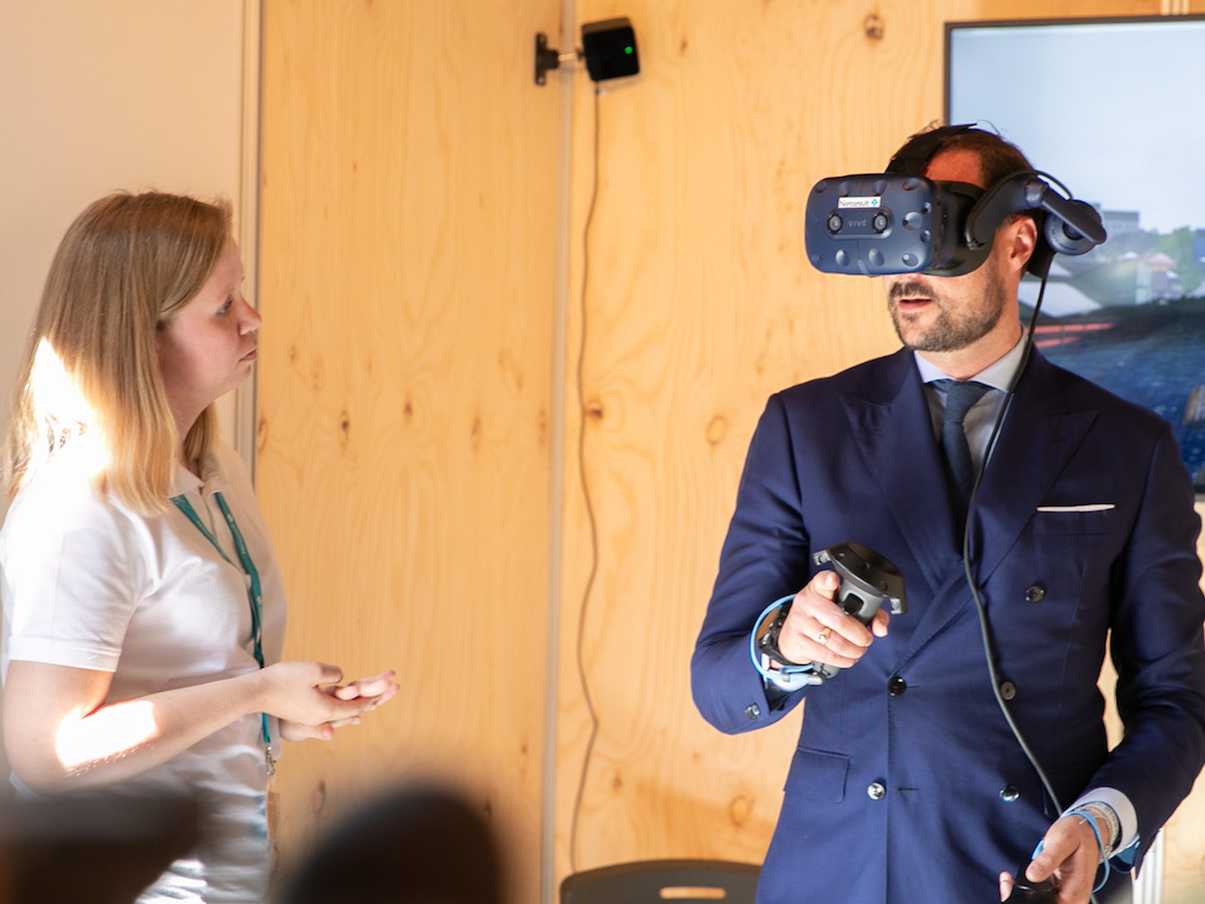 Kronprinsen besøkte også FUTURUM, en utstilling som viser hvordan en verden med lavere utslipp kan se ut i 2050. Her ble vanskelige temaer lagt fram på en forståelig måte, og man fikk blant annet se hvordan havnivået kan stige på steder man kjenner igjen gjennom VR-briller.