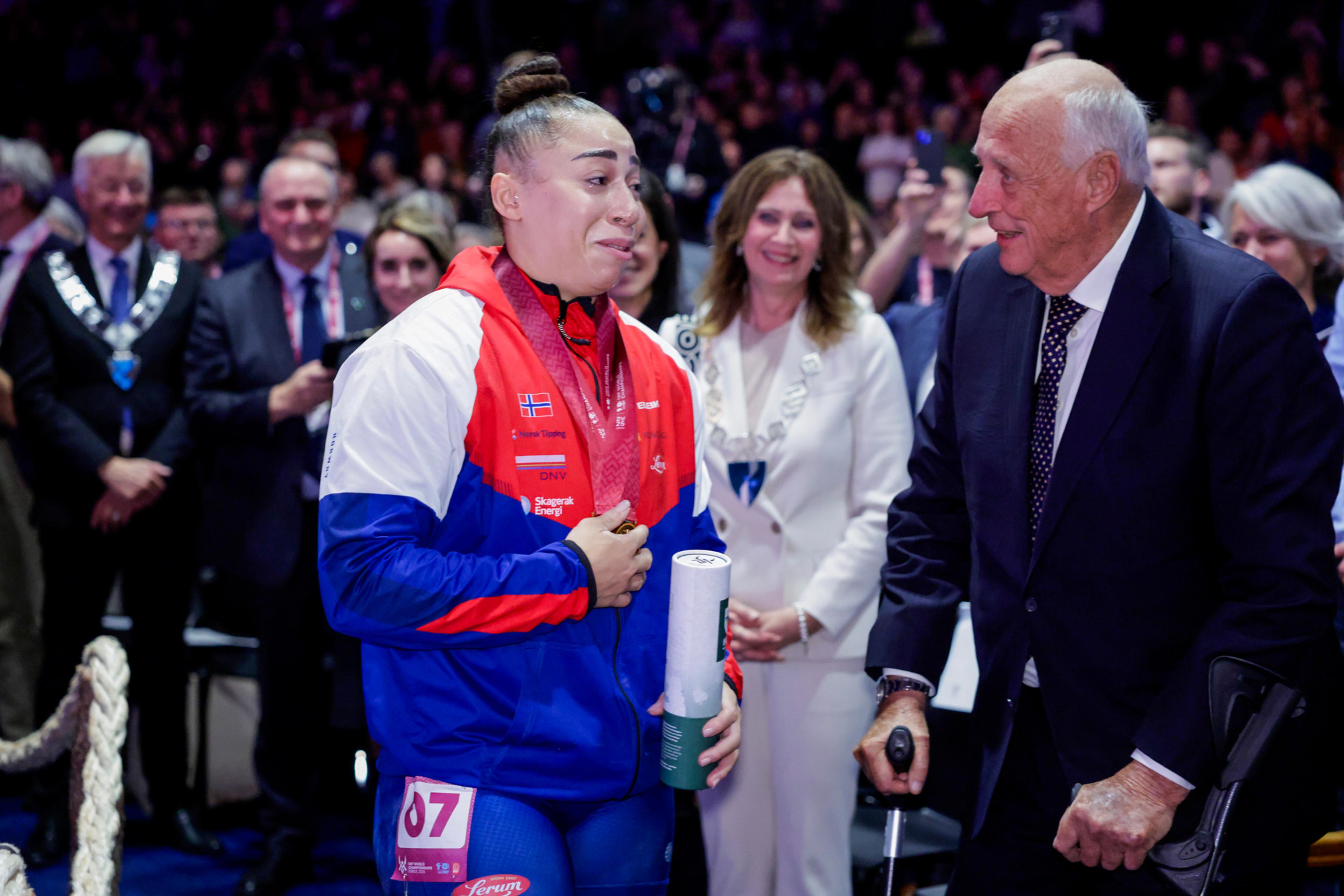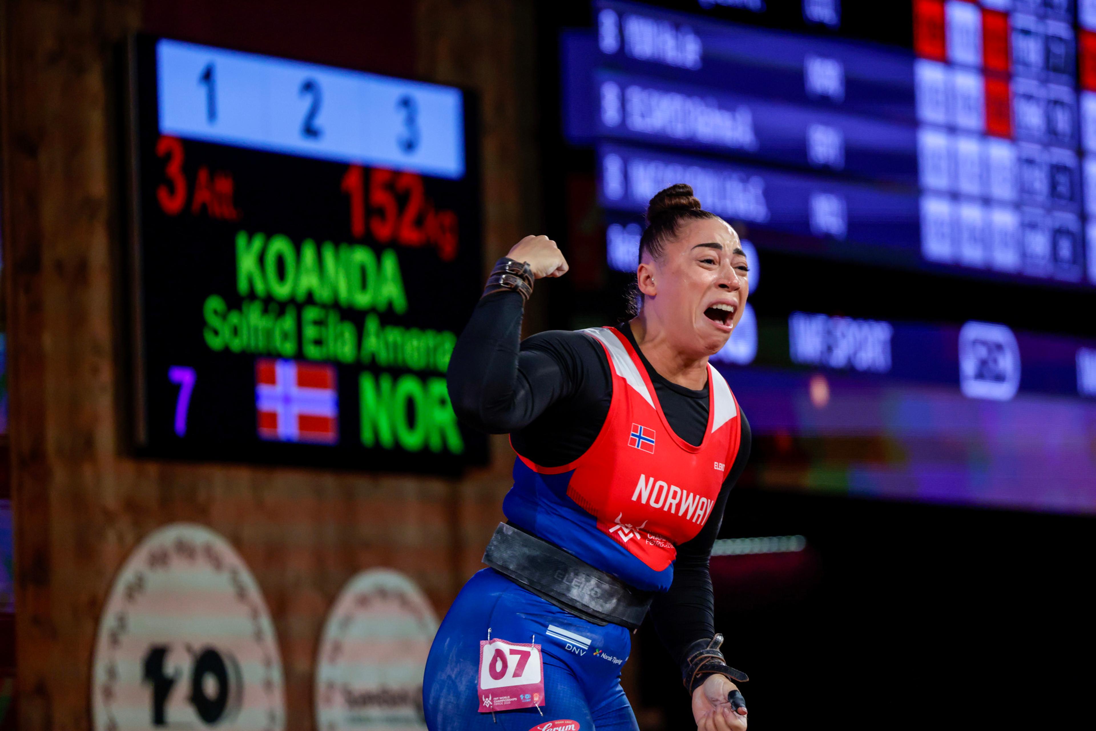 Hans Majestet Kongen var til stede og heiet da norske Solfrid Koanda tok VM-gull i vektløfting i Førde.