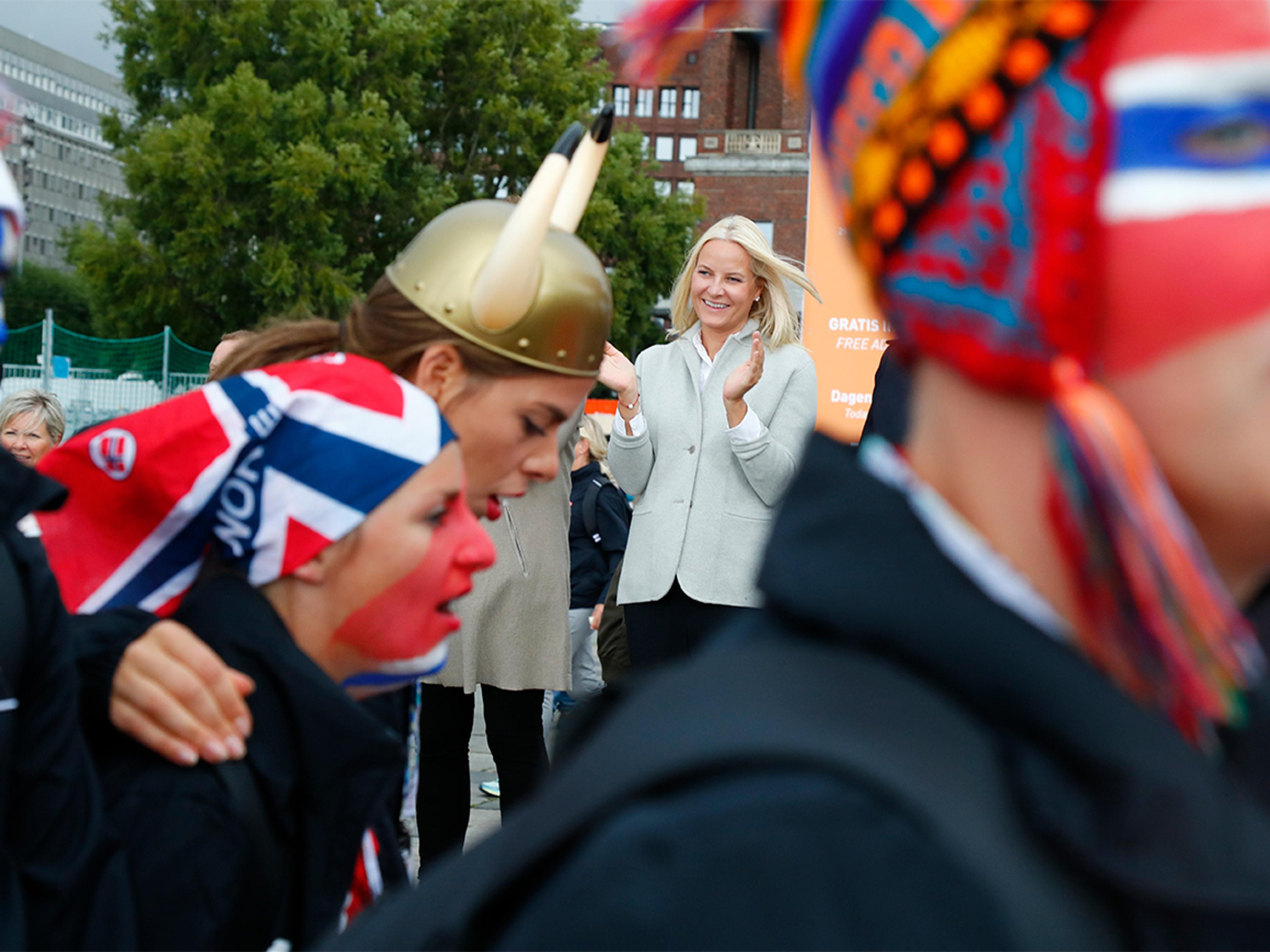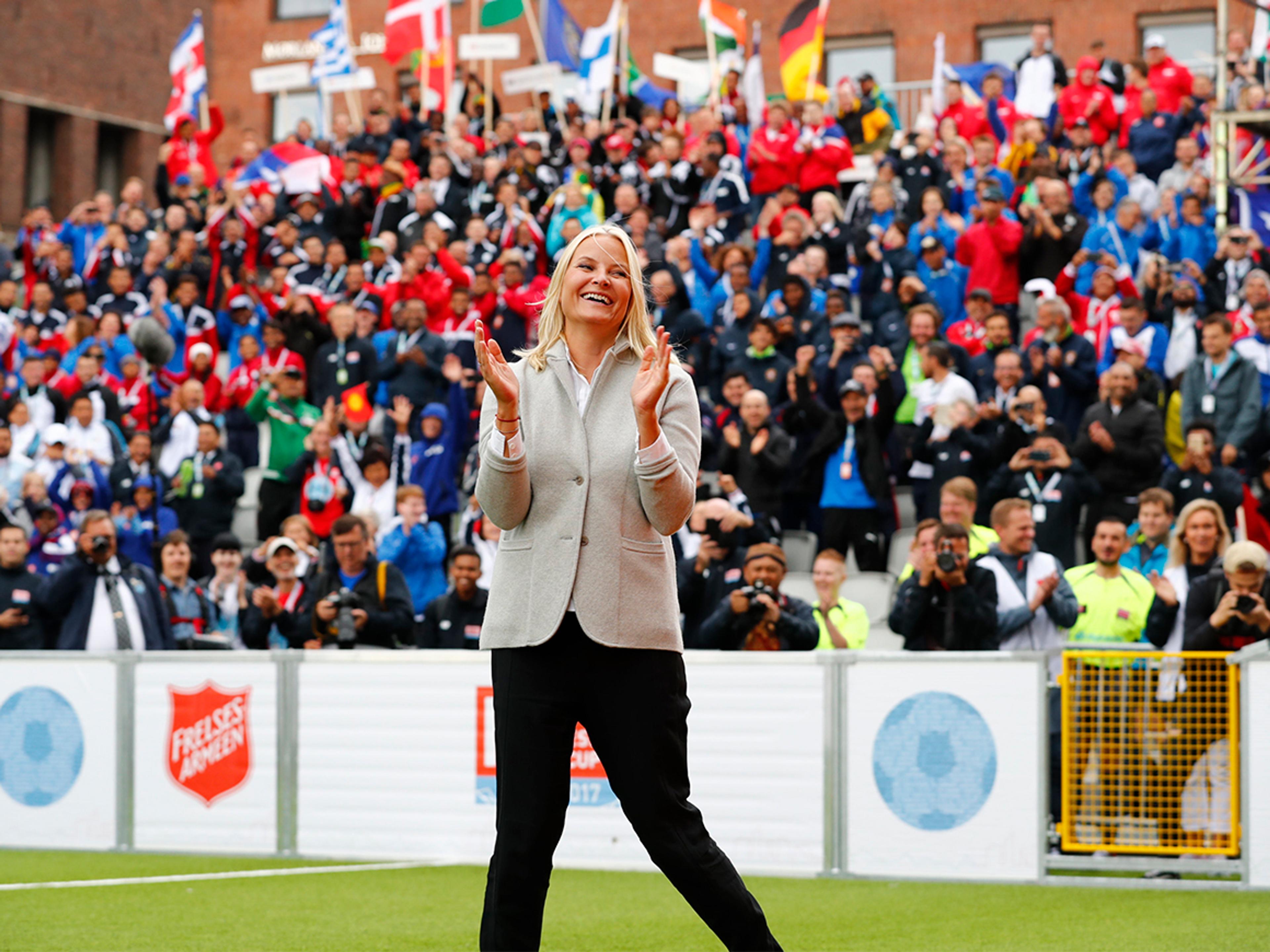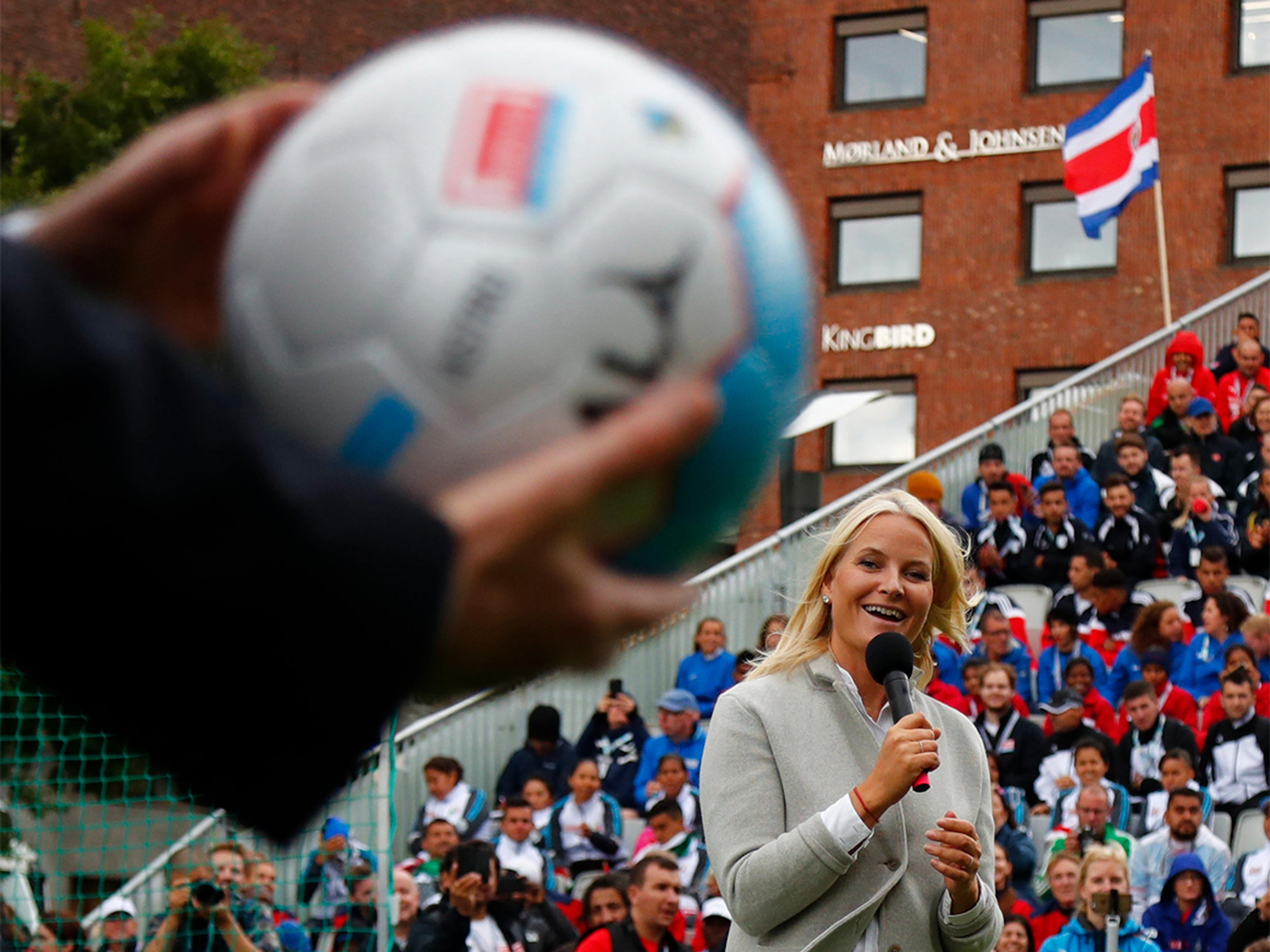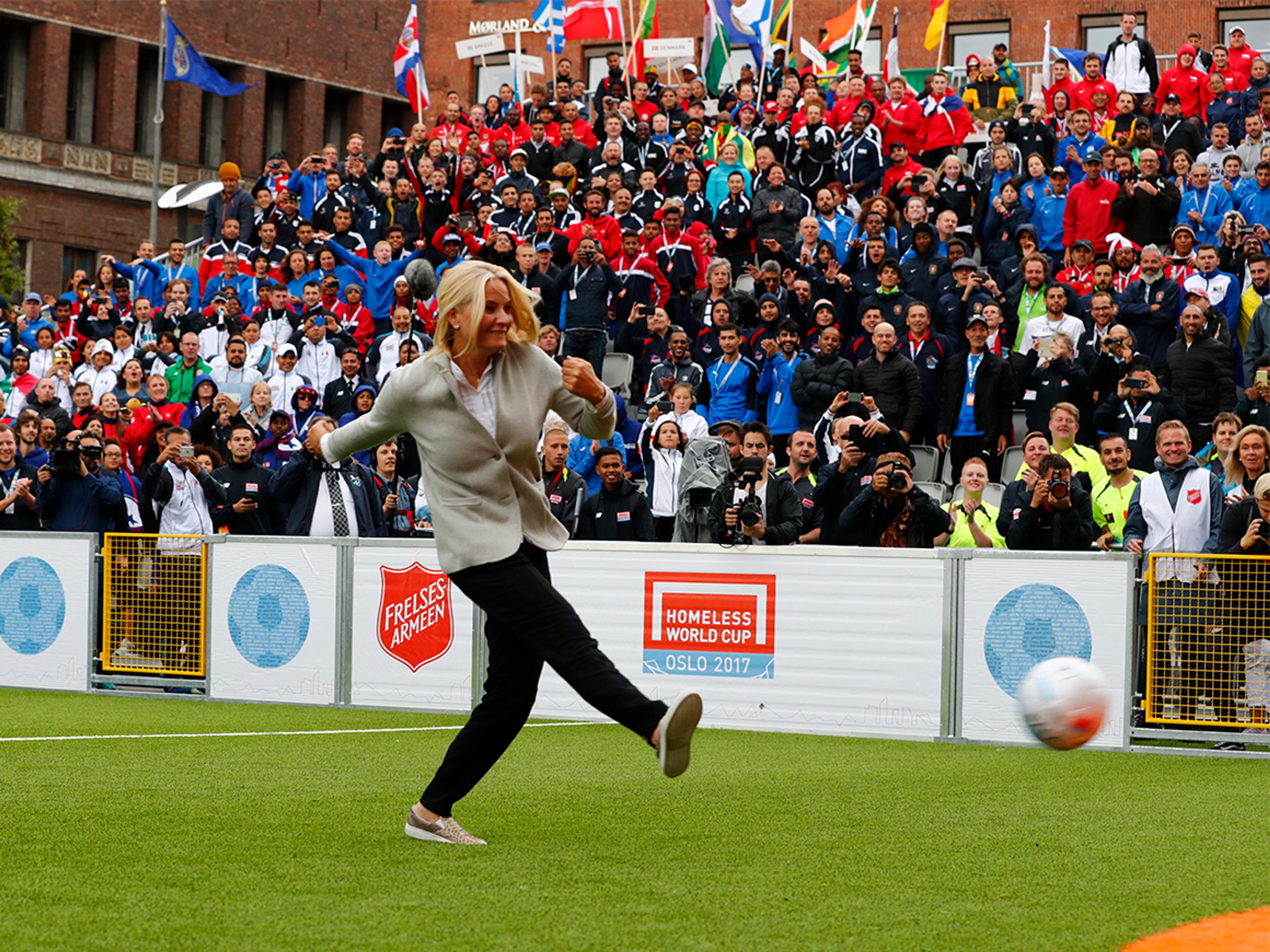 Hennes Kongelige Høyhet Kronprinsessen åpnet Homeless World Cup - Verdensmesterskapet i gatefotball for bostedsløse - med avspark på Rådhusplassen i dag. Norge - Chile var første kamp.