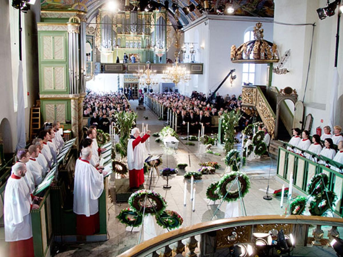 DD.MM. Kongen og Dronningen var mandag til stede da skuespilleren Wenche Foss ble bisatt fra Oslo domkirke. Foss døde mandag 28. mars og ble 93 år gammel.