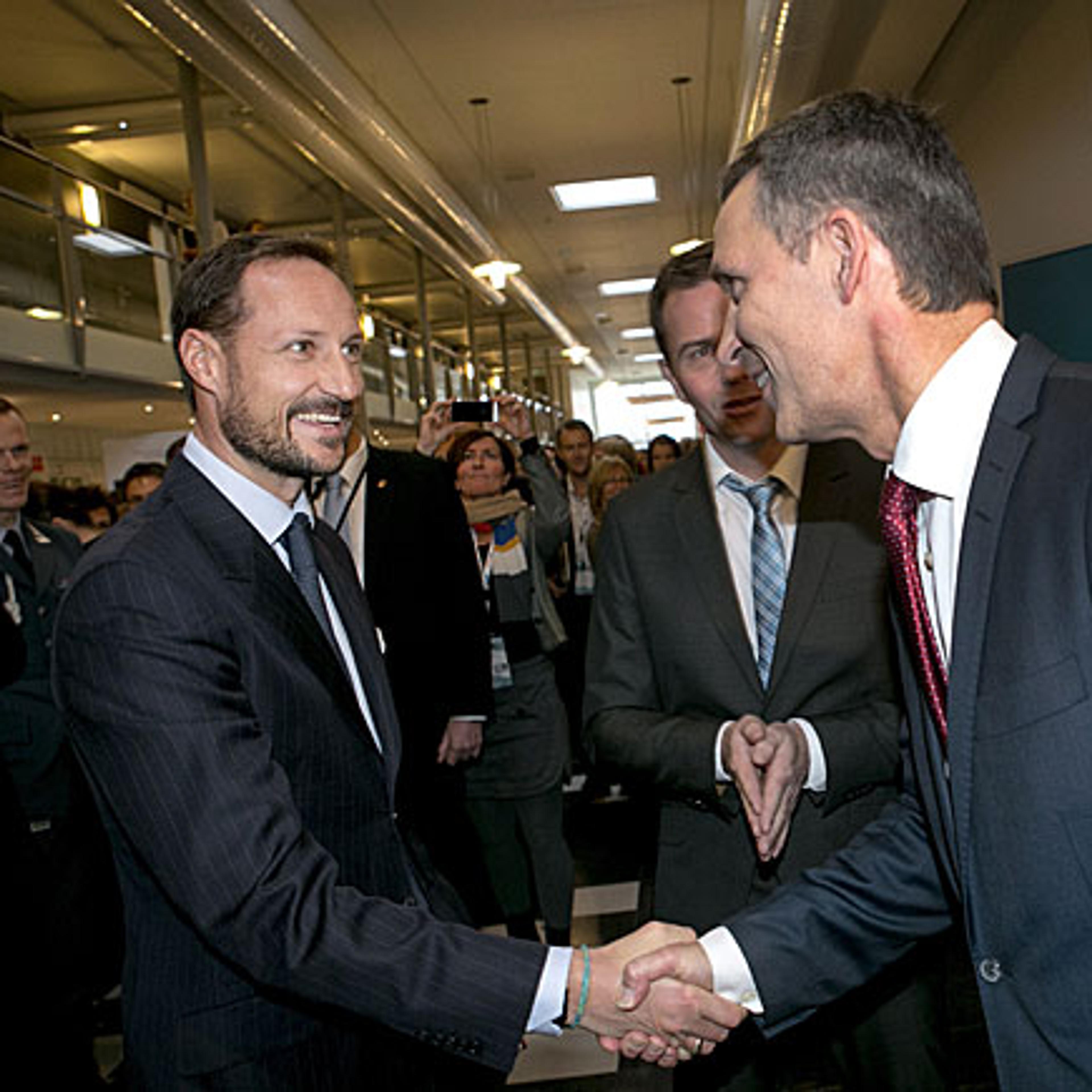 Kronprinsen fekk blant anna høyre innlegg av statsminister Jens Stoltenberg, Zero-leiar Marius Holm og direktør i Generation Investment Management David Blood.