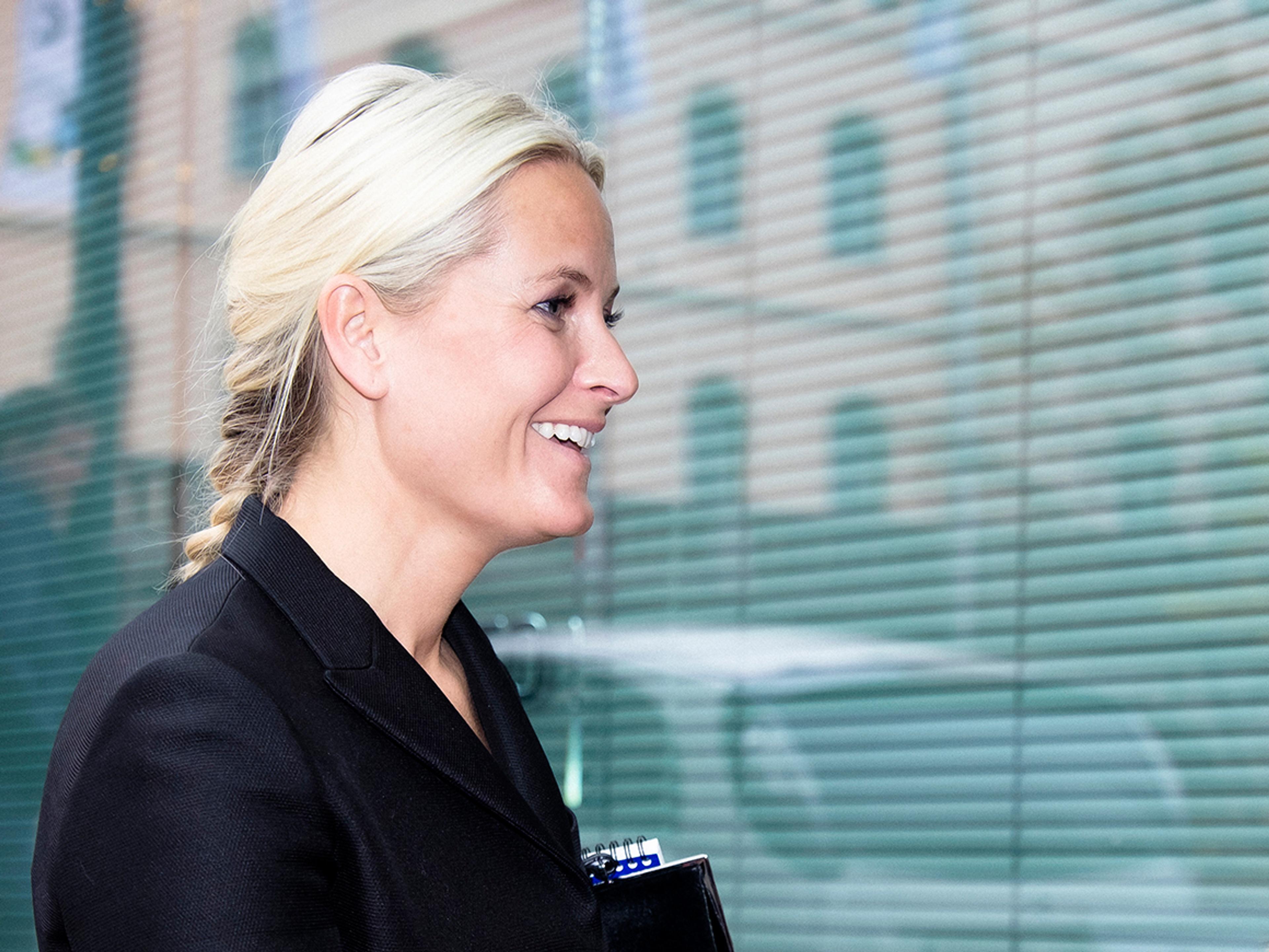 Kronprisessen ble tatt i mot av Oslos nye ordfører, Marit Borgen, og ZEROs leder, Marius Holm, da hun ankom konferansen i dag morges.