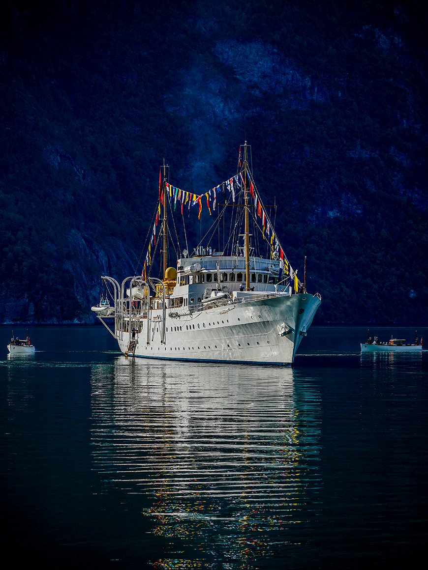 Å seile inn Storfjorden, slik Kongen og jeg gjorde i dag, gjør alltid et stort og bevegende inntrykk. Det føles "inni her". For dette er Sunnmøre på sitt mest eventyrlige – hvor de stupbratte fjellene borer seg ned i fjordbunnen og fossene kaster seg utfor de frodige liene.
