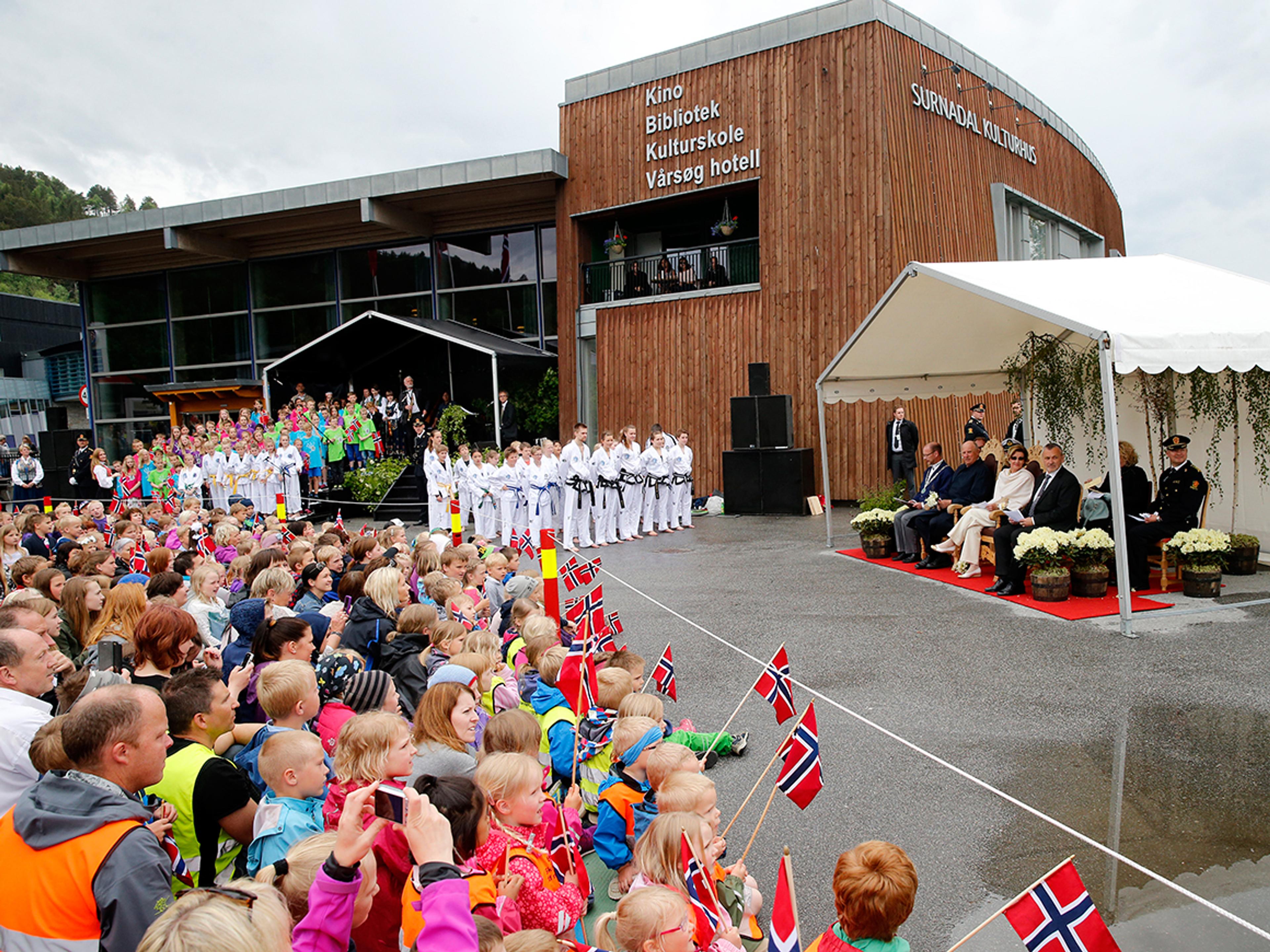 Dronningen og jeg kjenner at vi trives her i grenselandet mellom Vestlandet og Trøndelag! Dere har det dere trenger for å trives. Her er fjord og fjell, innland med jordbruk og skogbruk, og havbruk i fjordene. Dere har flere bedrifter som bidrar med verdiskaping og arbeidsplasser, og de sterke båtbyggertradisjonene er ivaretatt med blant annet bygging av fiskebåter og andre moderne fartøyer.